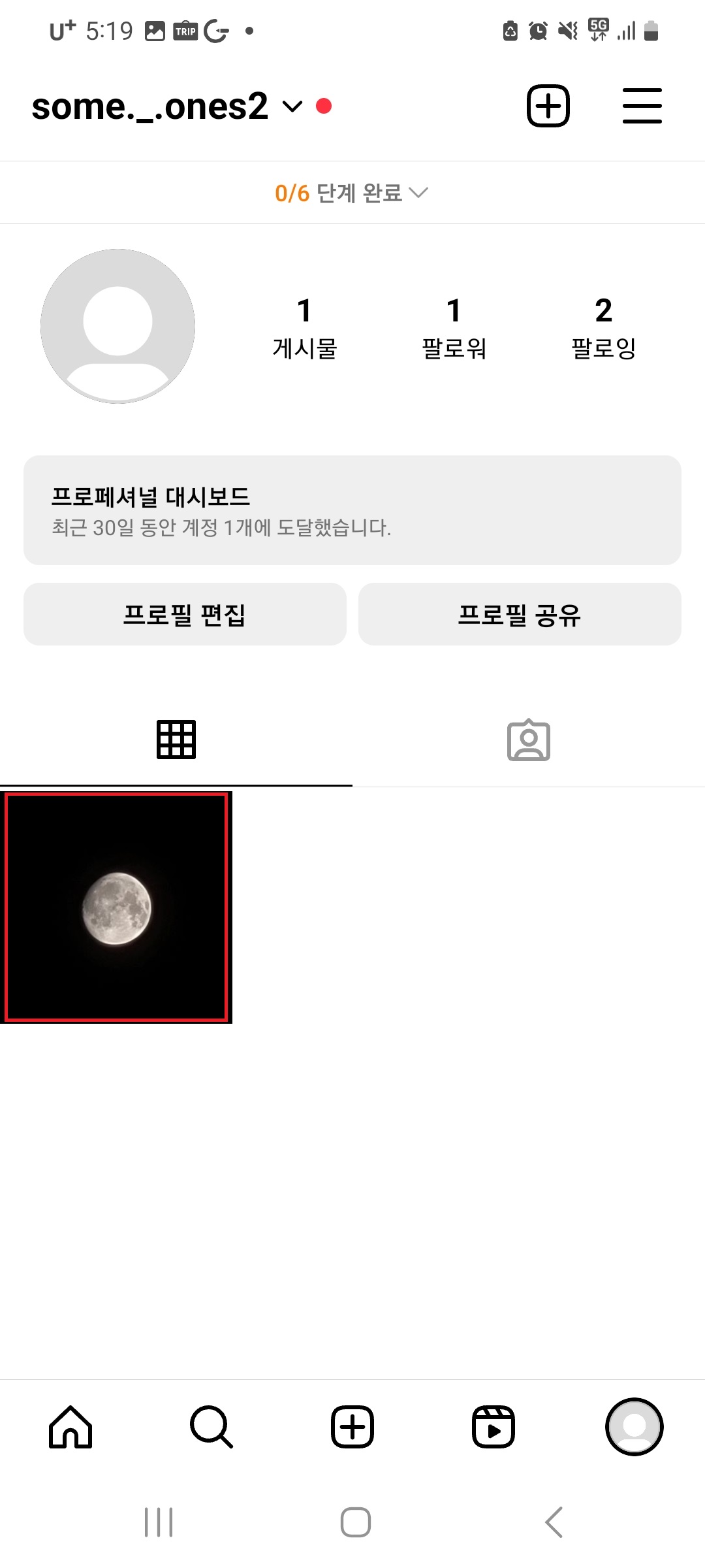 인스타 어플을 실행한 후 우측 하단 프로필을 눌러 내 피드로 들어가주세요!