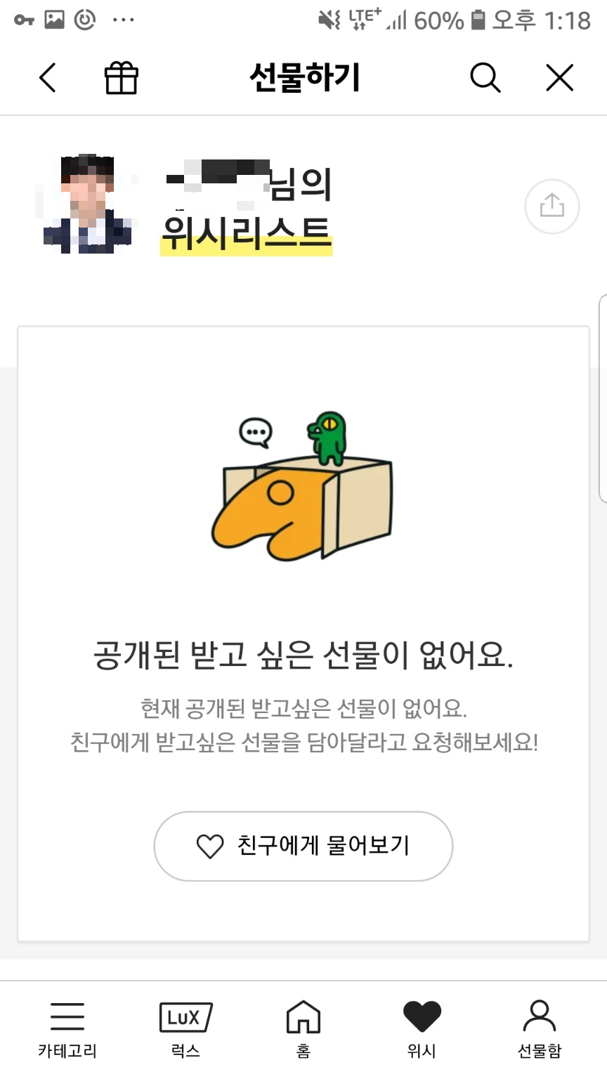 선물함에 들어가서 친구의 위시리스트를 선택해주세요.