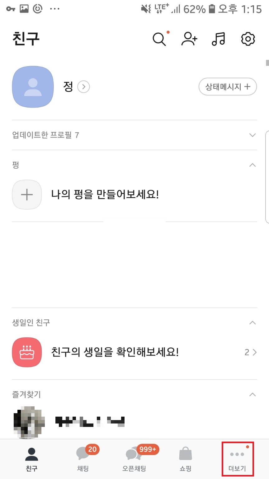 카톡을 실행해주시고 하단 메뉴 중 더보기에 들어가주세요.