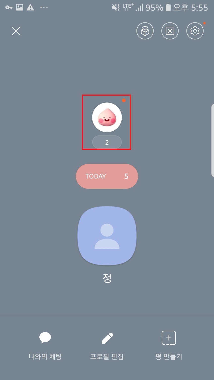 카톡 어플을 실행한 후 내 프로필을 클릭하여 들어가주세요.