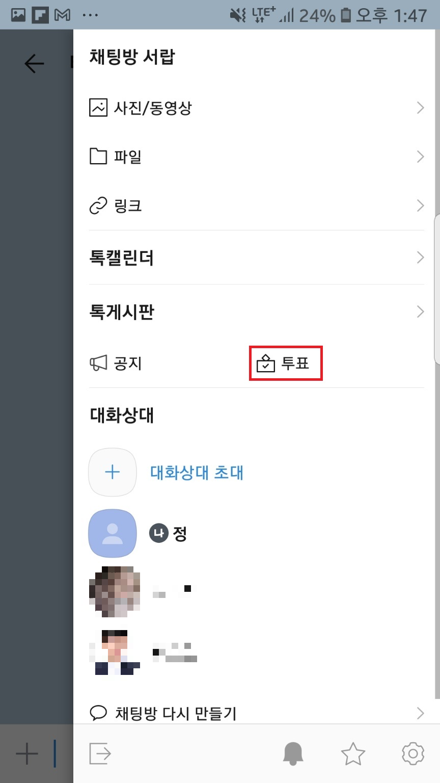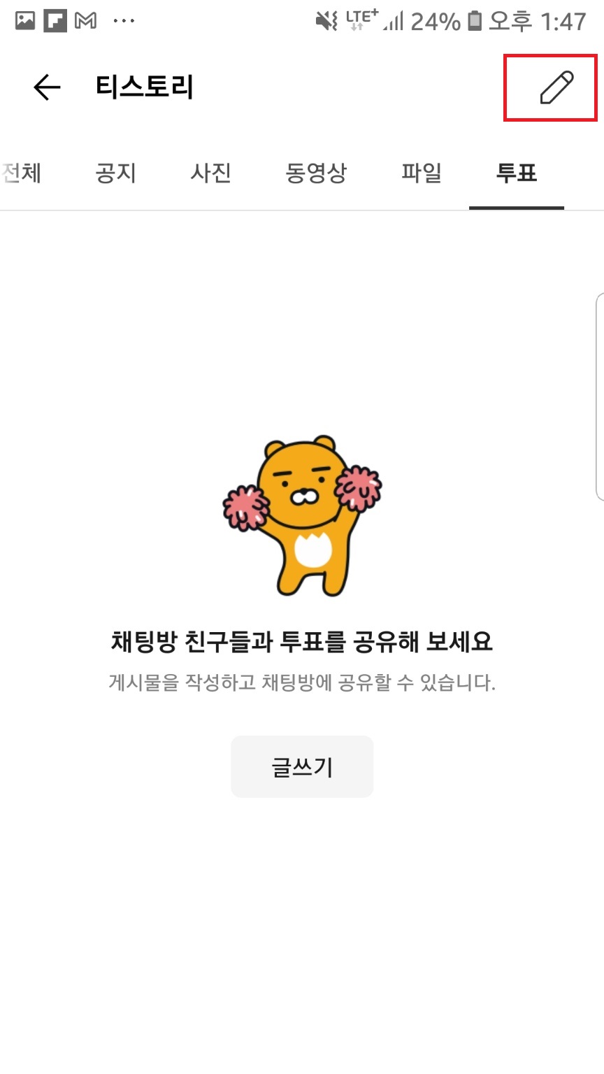 채팅방 서랍 ▶투표 ▶연필 아이콘