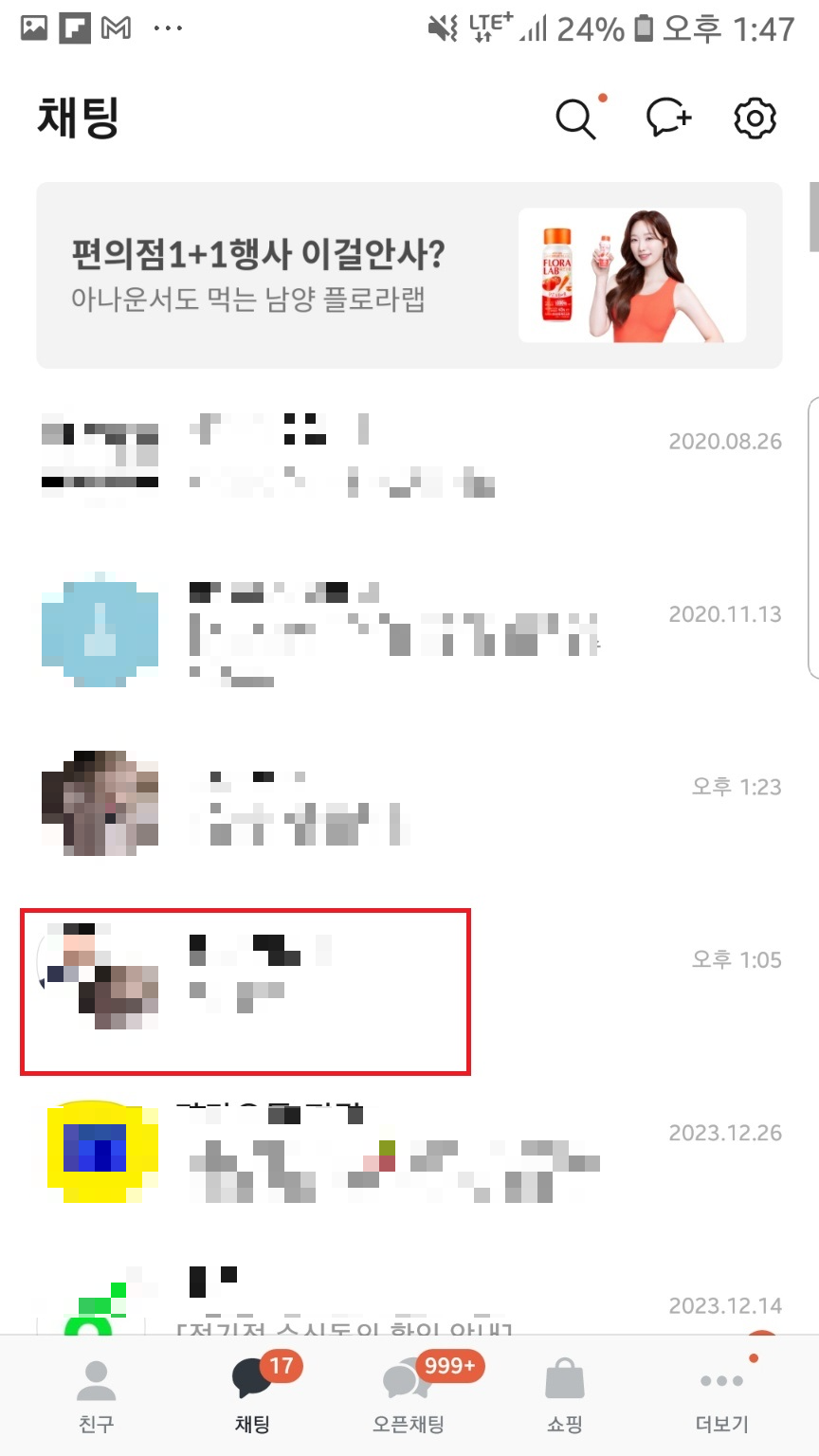 카톡 어플을 실행한 후 채팅방을 선택해주세요.
