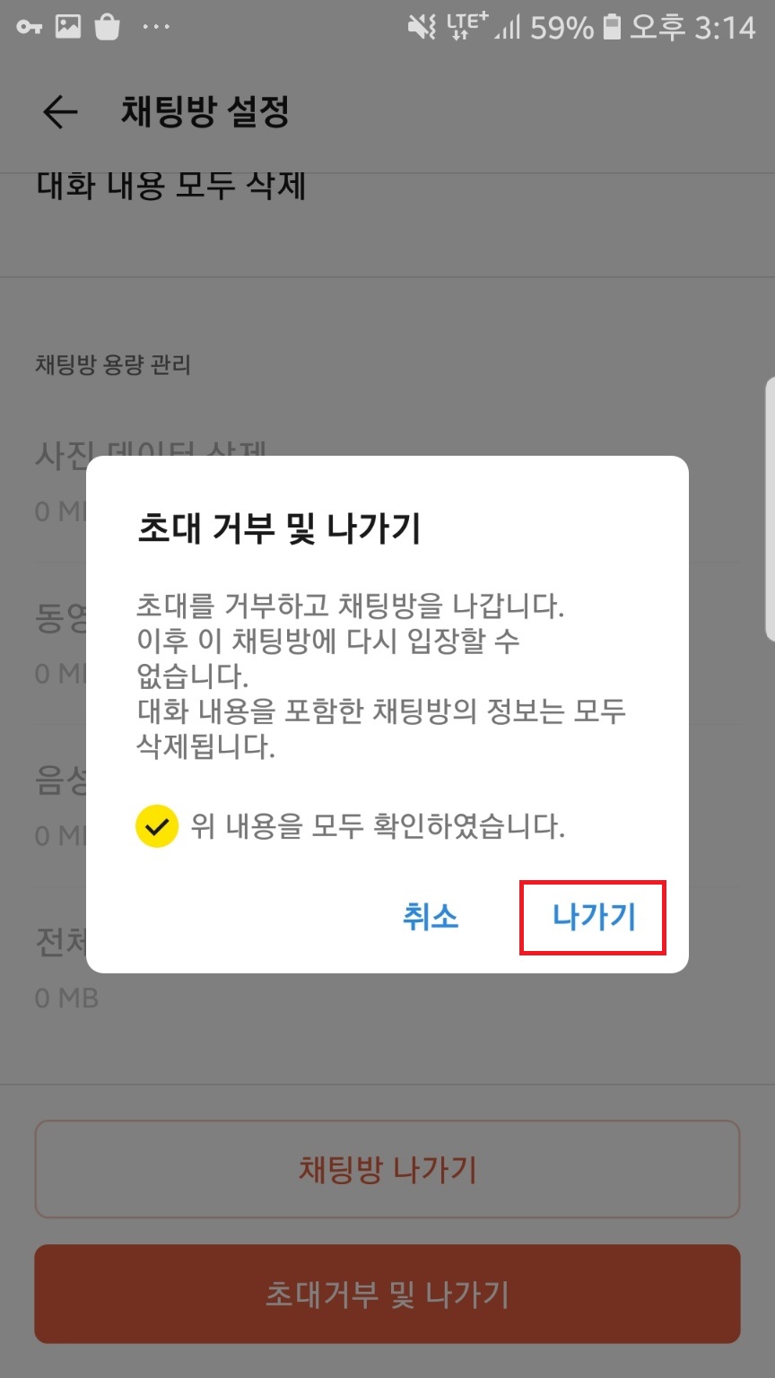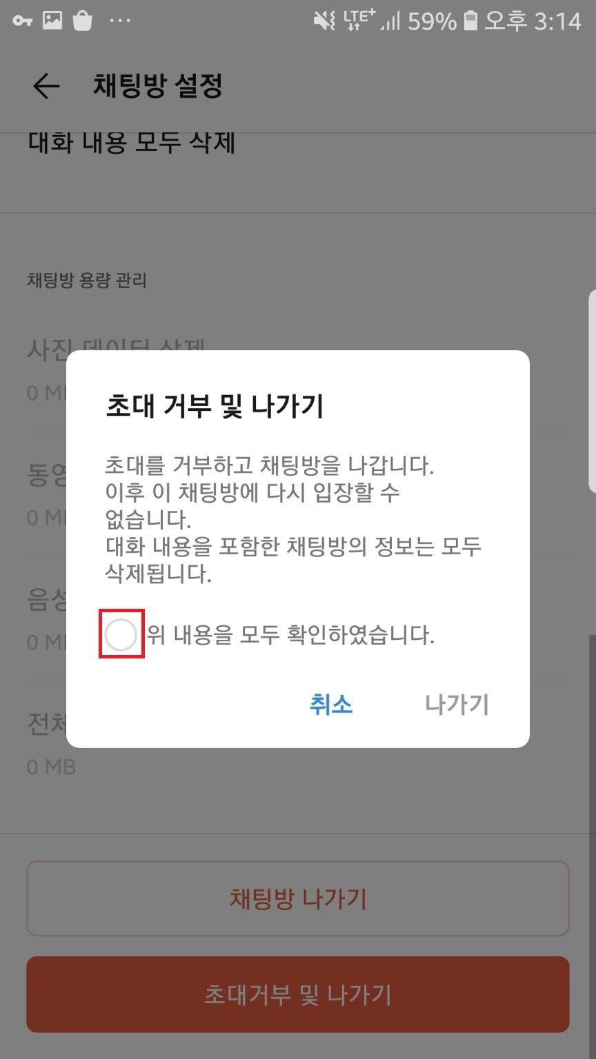 초대거부 및 나가기를 할 경우엔 조용히 나가기 기능을 사용할 수 없으니 이 점 참고하세요!