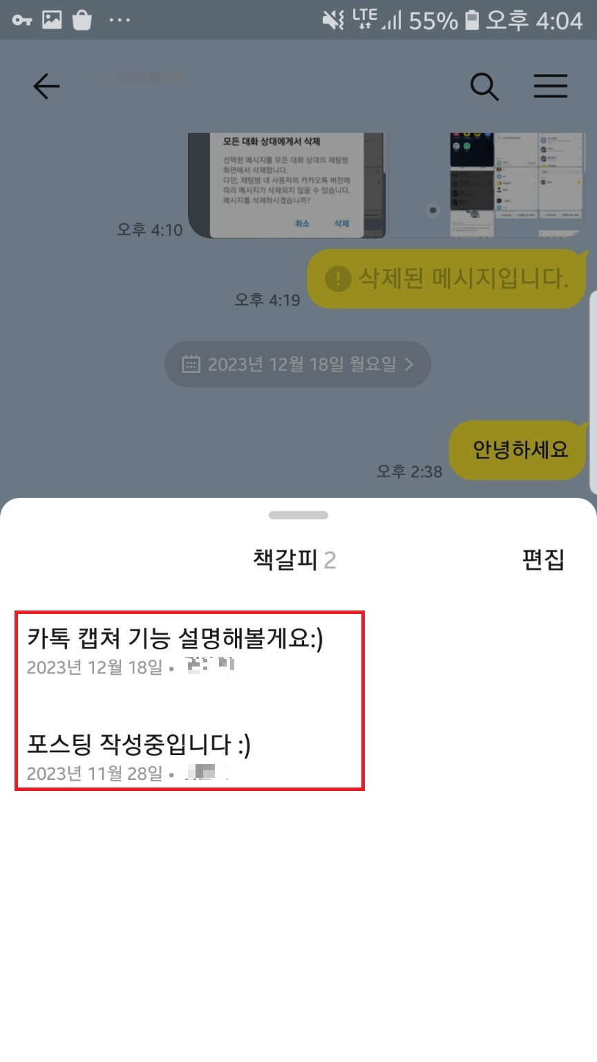 카카오톡(카톡) 책갈피 만들기 설정법!