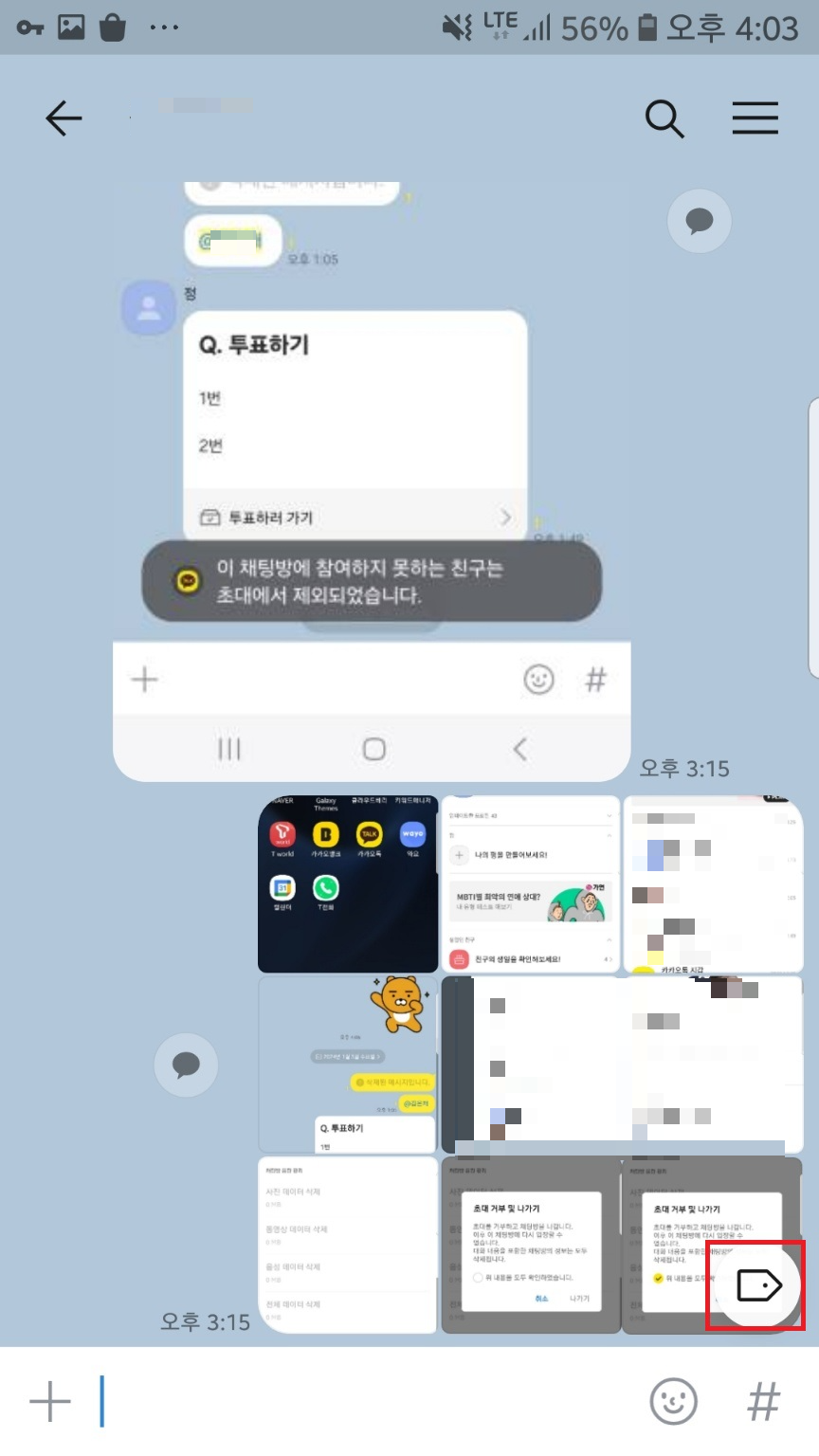 이렇게 책갈피를 설정해놓으면 메시지가 묻혀도 우측 하단 태그 아이콘만 클릭하면 다시 그 메시지로 이동된답니다!