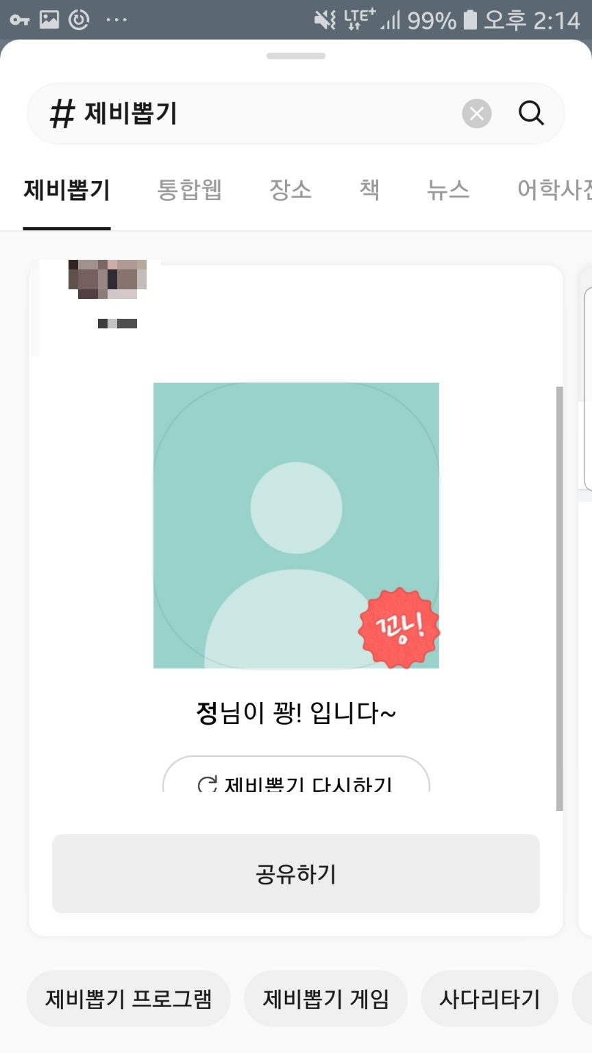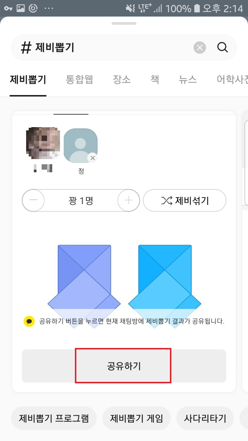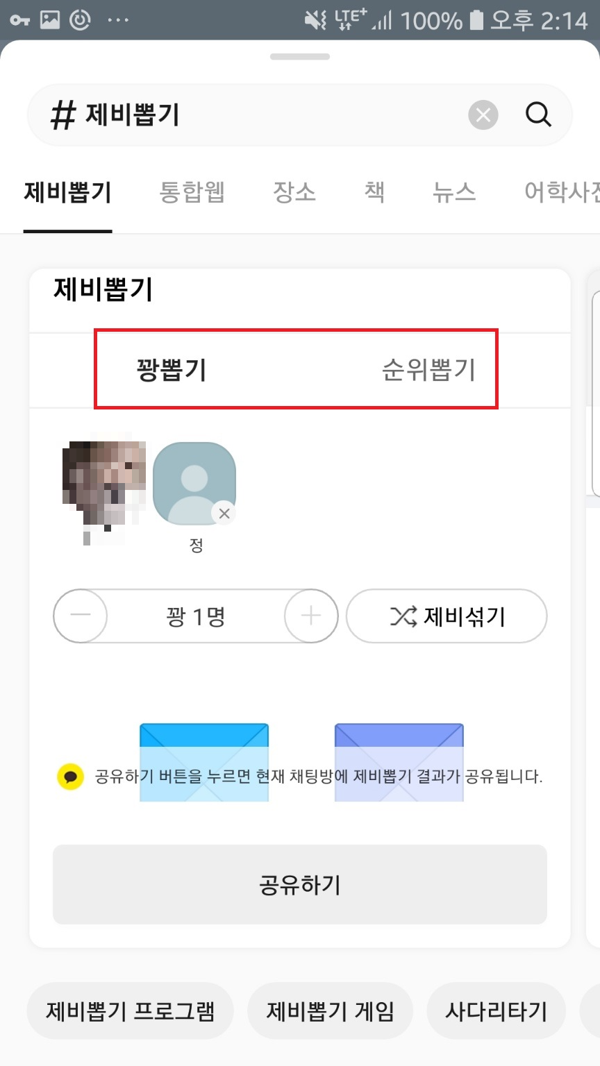 위에 뜨는 키워드 중 제비뽑기를 클릭해주세요.