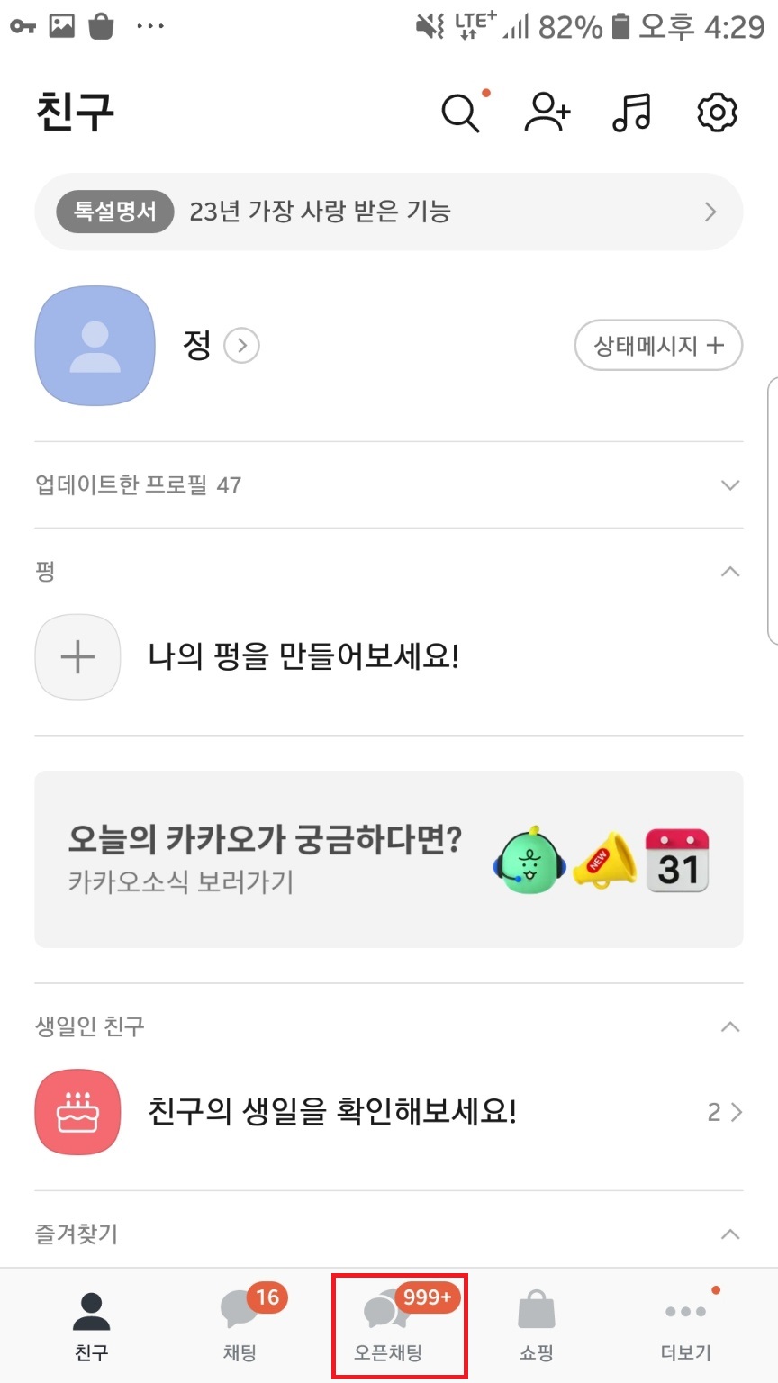 오픈채팅방을 선택해주시는데, 이때 내가 방장인 즉, 내가 만든 오픈채팅방으로 들어가주세요.