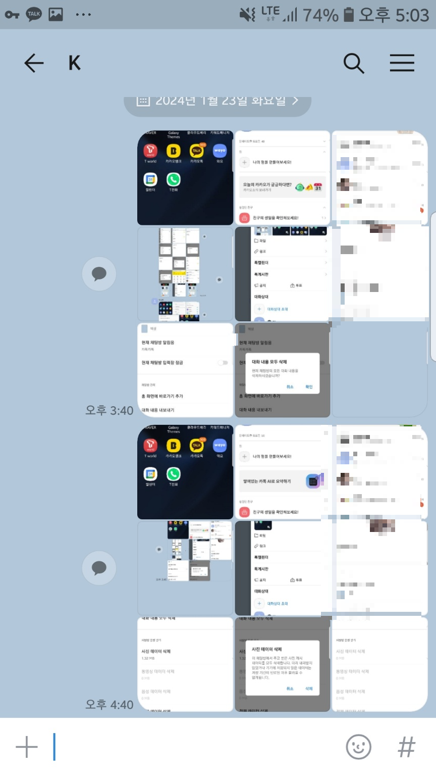 하지만 삭제 기능을 사용할 때는 늘 조심해야한다는 사실! 알고 계시지요? 카톡 데이터 삭제 기능을 사용하면 카톡 대화 삭제, 사진 삭제 등 많은 내용이 삭제될 수 있기 때문에 중요한 내용이 있으면 미리 옮겨놓는 게 좋아요.