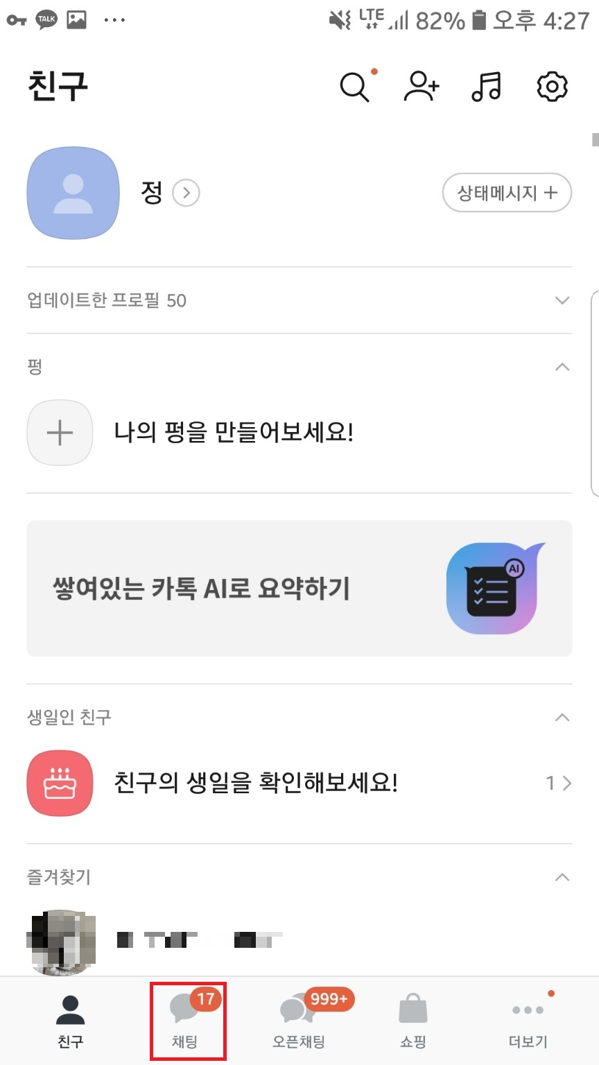 카톡을 실행해주시고 채팅 탭으로 들어가주세요.