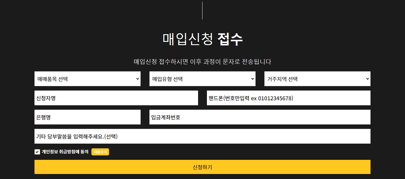 매입신청 접수도 홈페이지로 간단하게 가능하고, 접수하시면 이후 과정이 문자로 전송된답니다:)