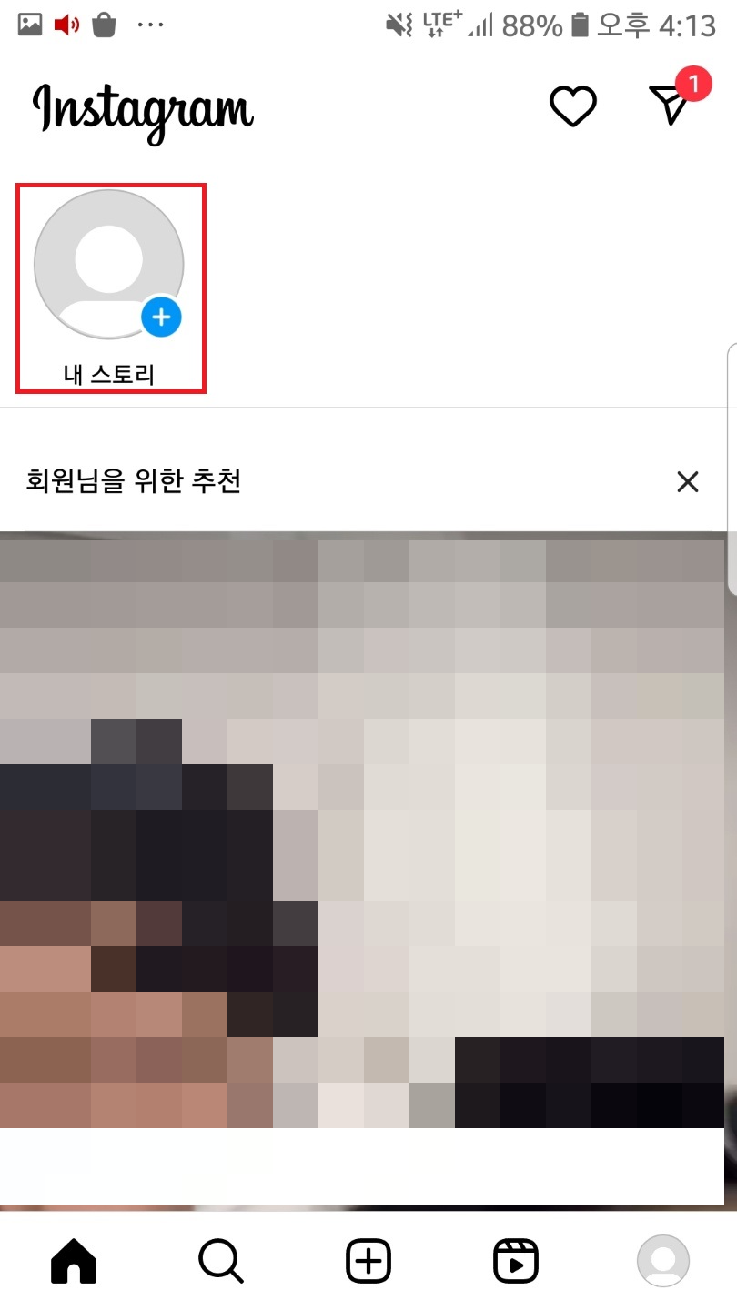 인스타를 실행해주시고 상단 내 스토리를 클릭해주거나 오른쪽으로 화면을 밀어 스토리 추가 창을 열어주세요!