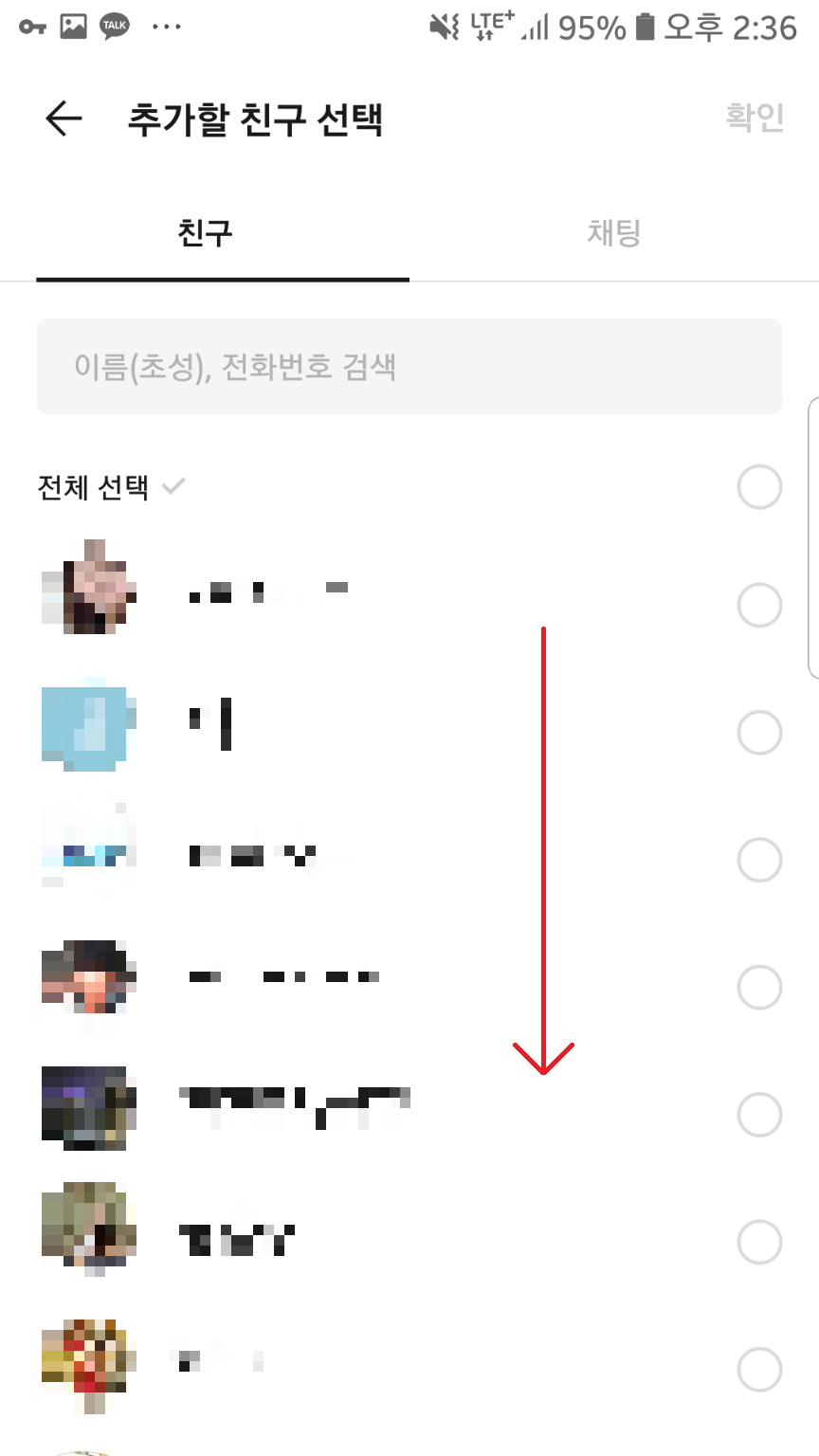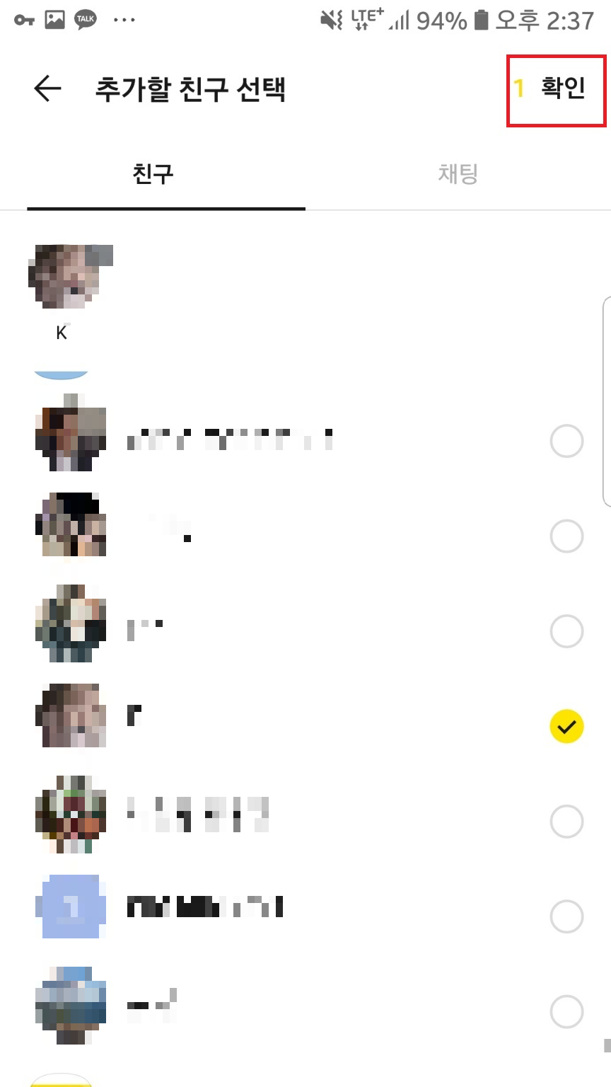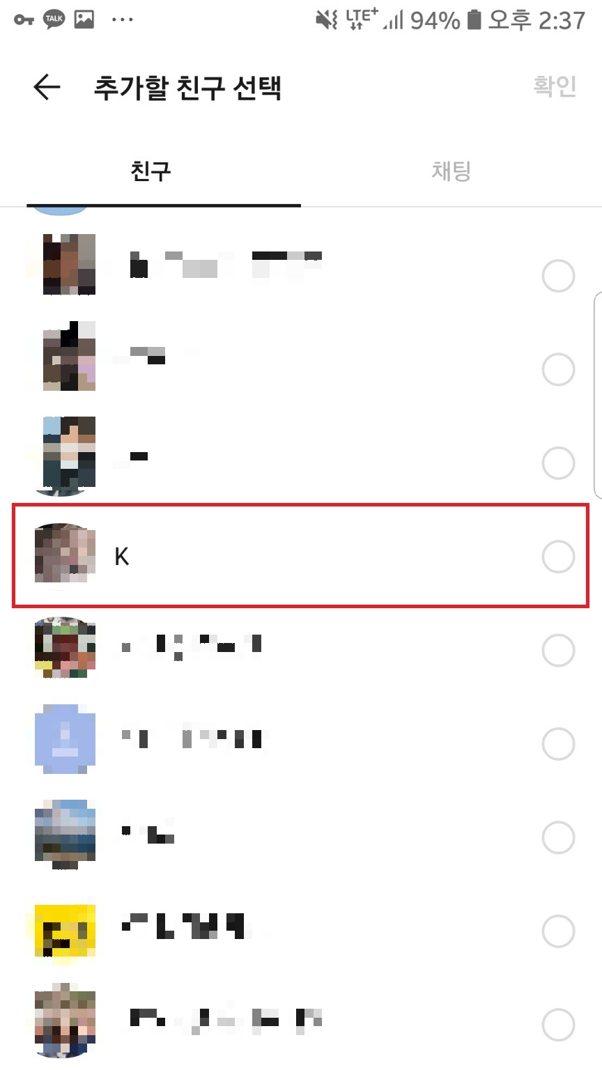 멀티 프로필을 보이도록 할 친구를 선택한 후 확인을 눌러주세요.