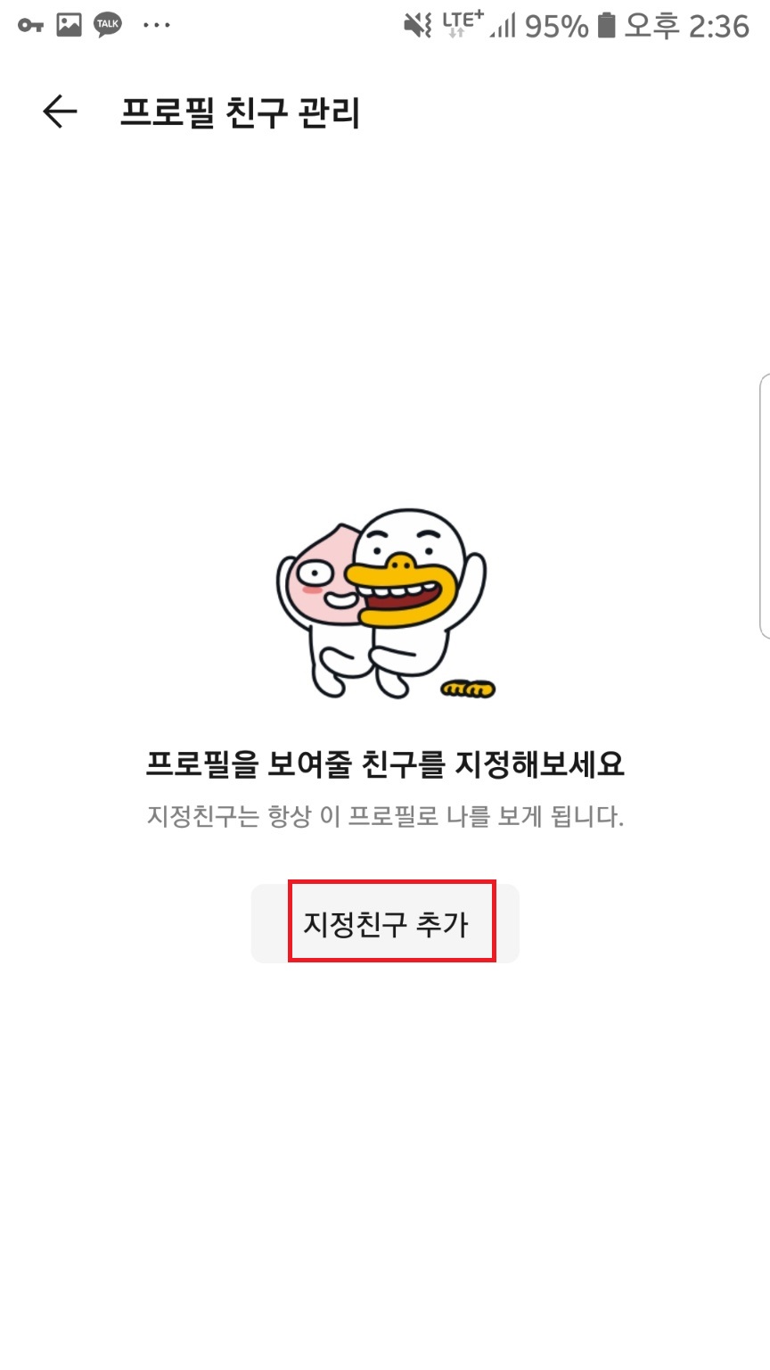 다시 이전 화면으로 돌아가 친구 관리를 클릭하고 지정친구 추가를 눌러주세요.