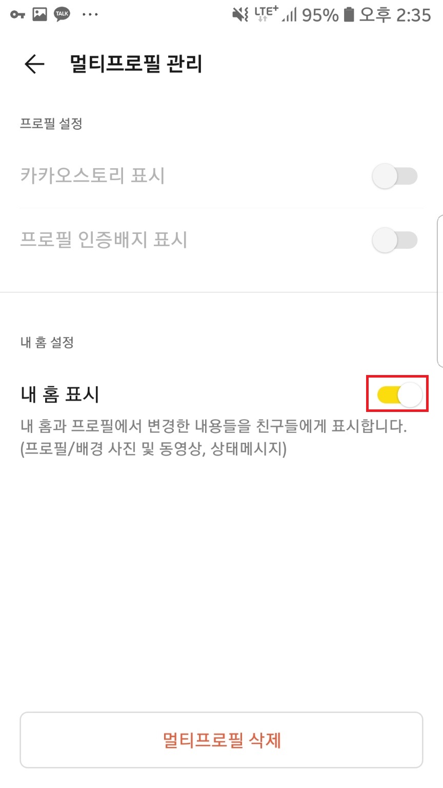 멀티프로필 클릭 ▶상단 톱니바퀴 아이콘