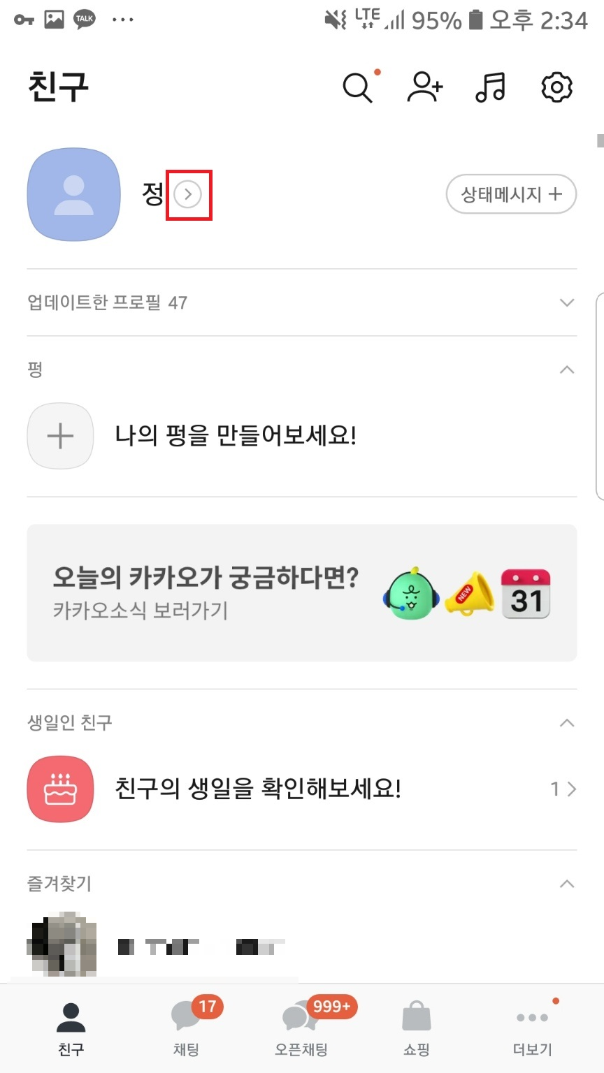 이렇게 하면 지정한 친구 화면에는 내가 설정한 프로필로 보이게 된답니다!