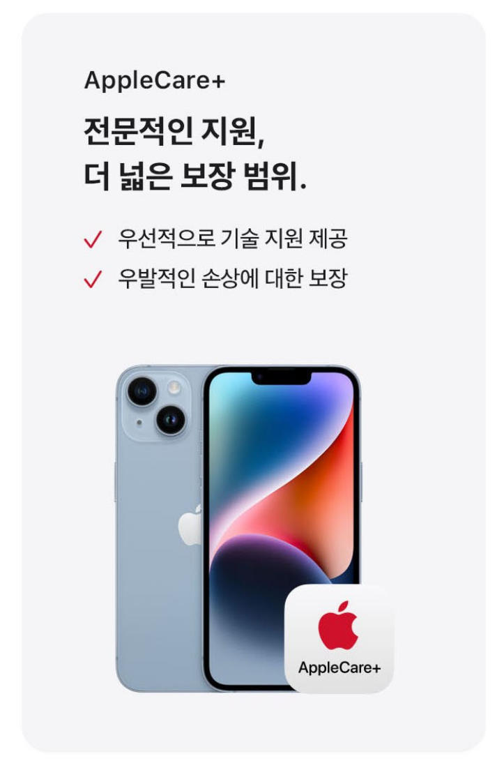 애플케어 등록을 통해 우선적으로 기술 지원 제공과 우발적인 손상에 대한 보장을 받을 수 있어요.