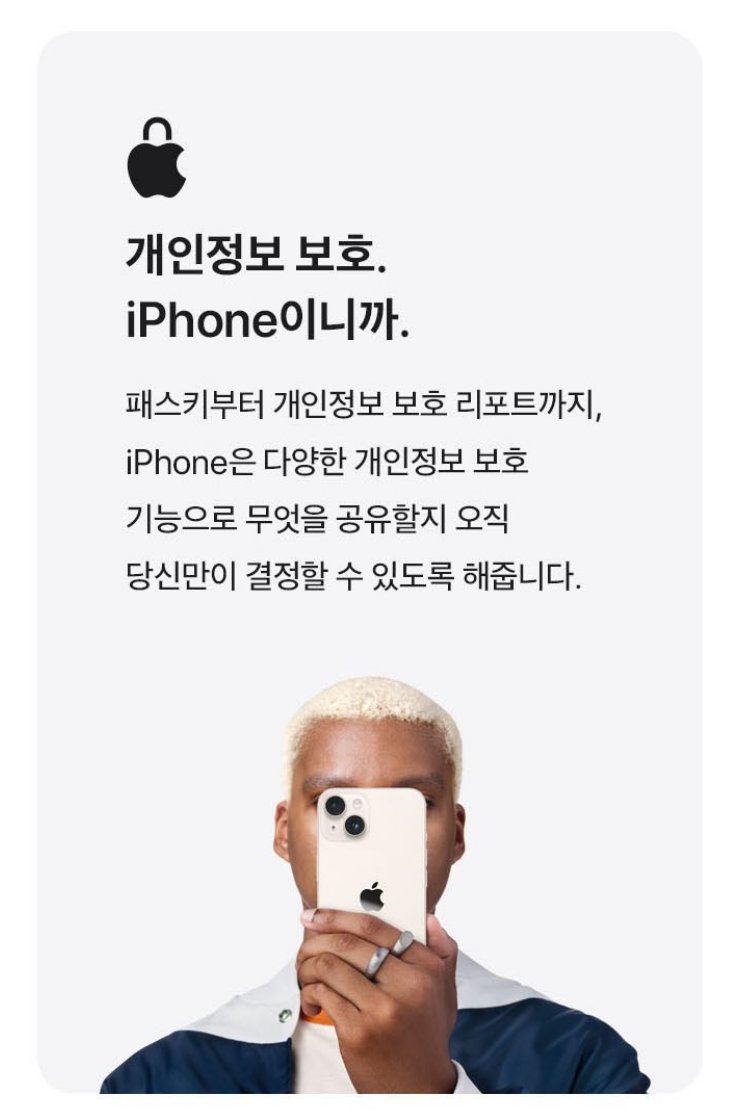 패스키부터 개인정보 보호 리포트까지 아이폰은 다양한 개인정보 보호 기능으로 무엇을 공유할 지 오직 스스로 결정할 수 있도록 해줘요.