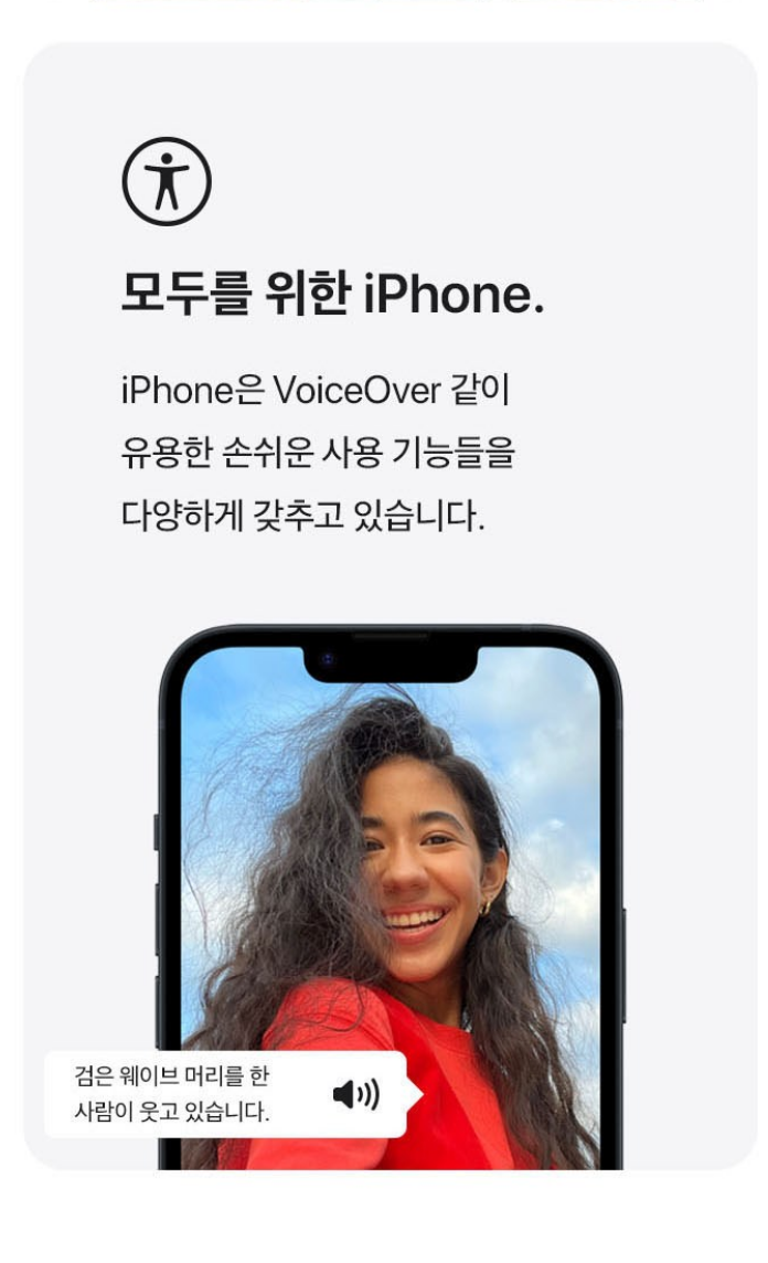 아이폰은 VoiceOver과 같이 유용한 손쉬운 사용 기능들을 다양하게 갖추고 있어요.