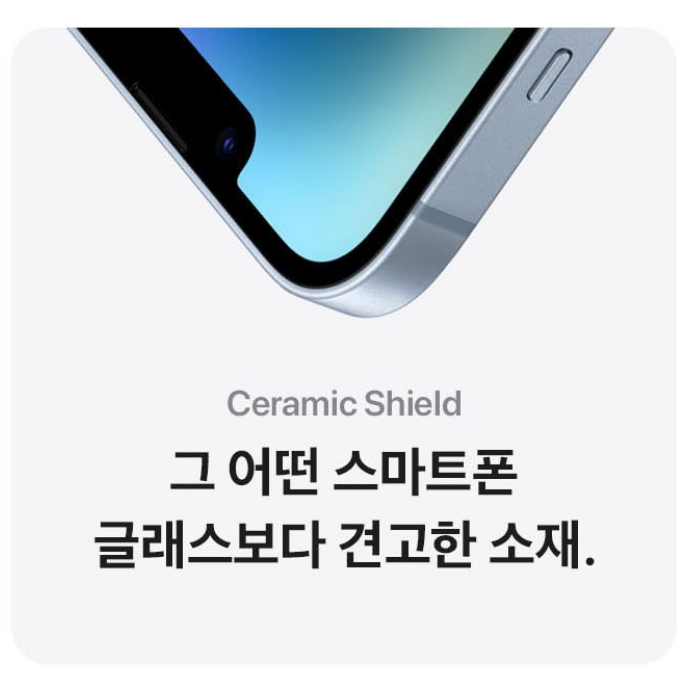 세라믹 쉴드 소재로 그 어떤 스마트폰 글래스보다 견고한 소재로 만들어졌어요.
