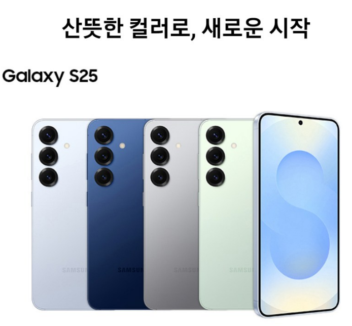 갤럭시25는 실버쉐도우, 네이비, 아이스 블루, 민트 4가지로 구성되어 있어요.