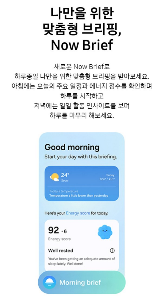 새로운 Now Brief로 하루종일 나만을 위한 맞춤형 브리핑을 받아보세요. 아침에는 오늘의 주요 일정과 에너지 점수를 확인하며 하루를 시작하고 저녁에는 일일 활동 인사이트를 보며 하루를 마무리 할 수 있어요.
