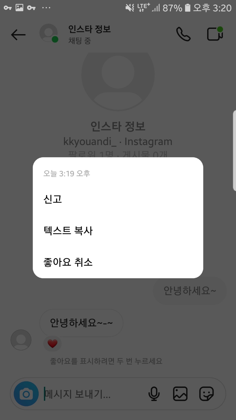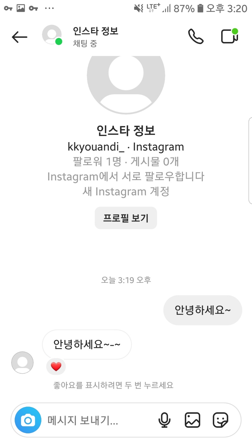 요즘에는 인스타 디엠 확인 했다는 의미로 하트를 눌러주기도 한다고 해요. 인스타 디엠 사진에도 하트를 누를 수 있어서 대답하기 애매할 때 하트 기능을 사용하면 확인했다는 표시를 간단하고 귀엽게 한 느낌이 들더라구요~