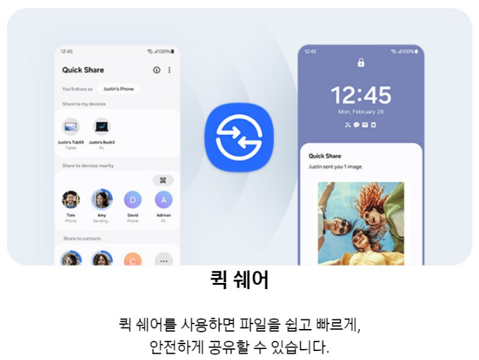 퀵 쉐어를 사용하면 파일을 쉽고 빠르게, 안전하게 공유할 수 있어요.