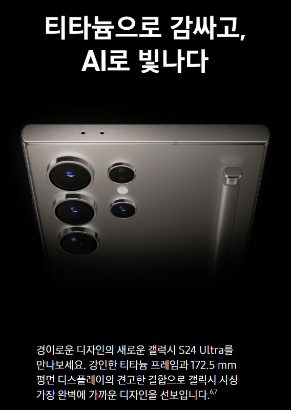 경이로운 디자인의 새로운 갤럭시 S24 Ultra를 만나보세요. 강인한 티타늄 프레임과 172.5mm 평면 디스플레이의 견고한 결합으로 갤럭시 사상 가장 완벽에 가까운 디자인을 선보여요.