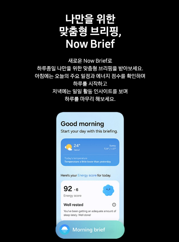 새로운 Now Brief로 하루종일 나만을 위한 맞춤형 브리핑을 받아보세요. 아침에는 오늘의 주요 일정과 에너지 점수를 확인하며 하루를 시작하고 저녁에는 일일 활동 인사이트를 보며 하루를 마무리 해보세요.