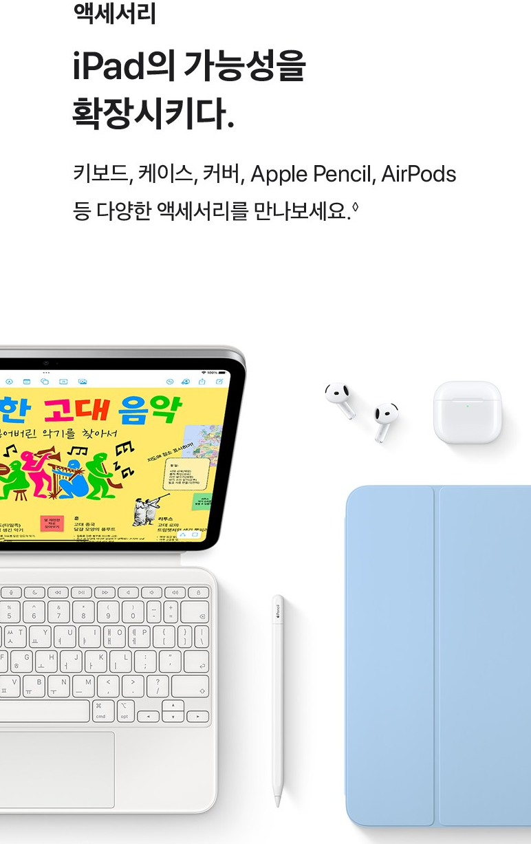키보드, 케이스, 커버, 애플 펜슬, 에어팟 등 다양한 악세사리를 에어팟과 함께 활용햐실 수 있어요.