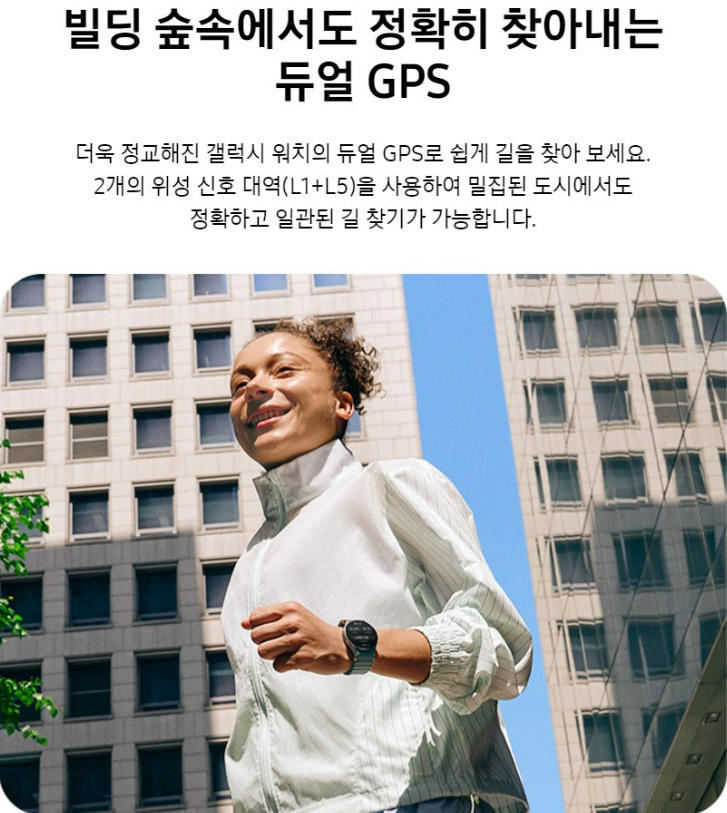 더욱 정교해진 갤럭시 워치의 듀얼 GPS로 쉽게 길을 찾아보세요. 2개의 위성 신호 내역을 사용하여 밀집된 도시에서도 정확하고 일관된 길 찾기가 가능합니다.