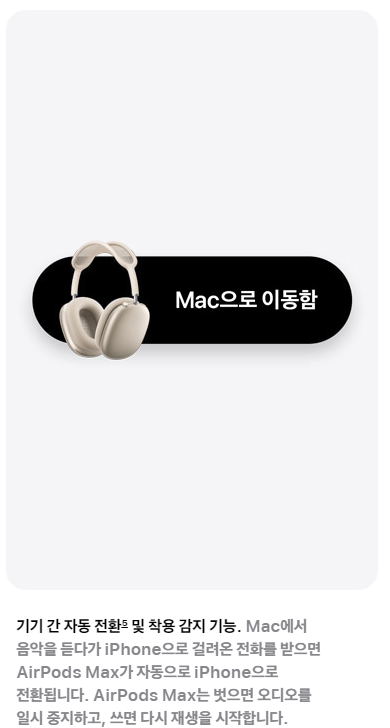 애플 기기 간의 연동이 매우 잘 되어 있기 때문에 사용하는 모든 애플 기기에 에어팟 맥스를 연동해두면 더 편리하게 사용할 수 있어요.