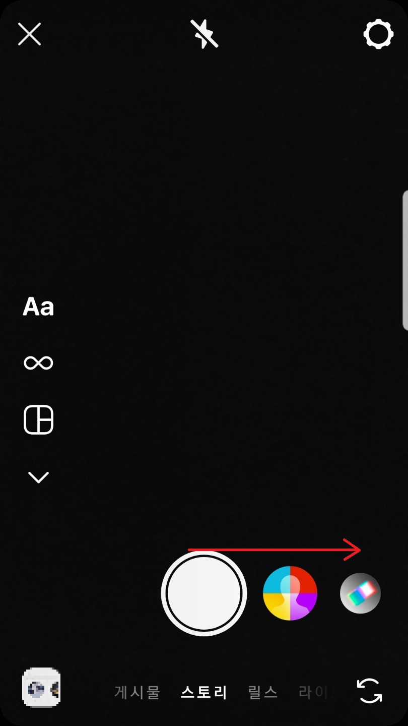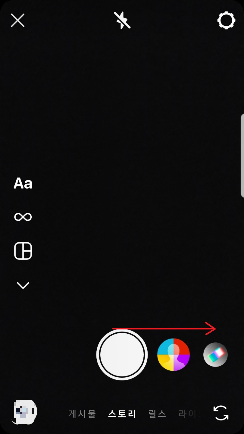 인스타를 실행하시고 화면을 오른쪽으로 밀어 스토리창을 열어주세요.