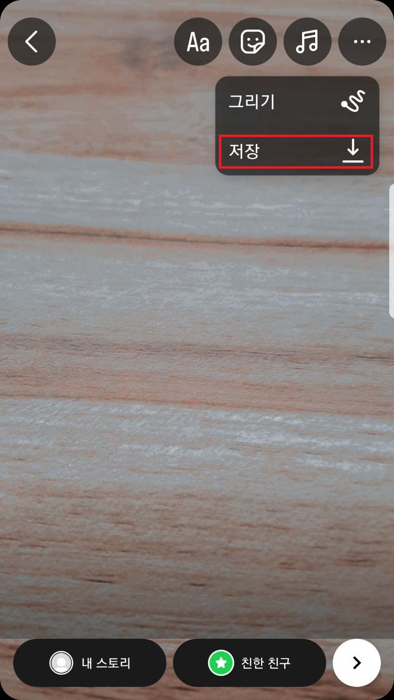 촬영한 후 우측 상단 점 세 개를 클릭해 저장을 누르면 필터가 적용된 사진을 핸드폰에도 저장할 수 있어요!