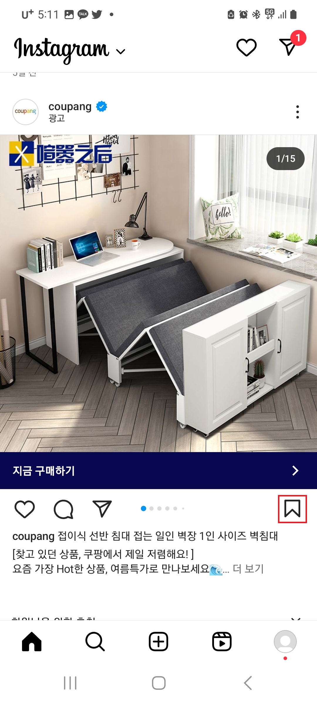 인스타그램 게시물 저장됨 기능 사용해봐요!