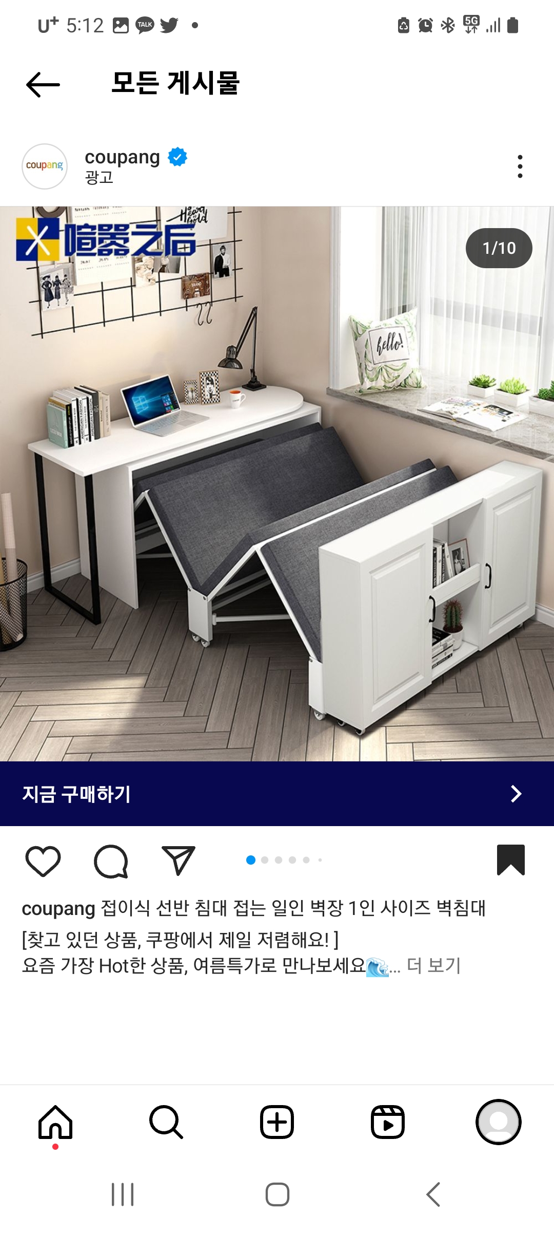 인스타 실행▶피드 스크롤하여 원하는 게시물 찾기