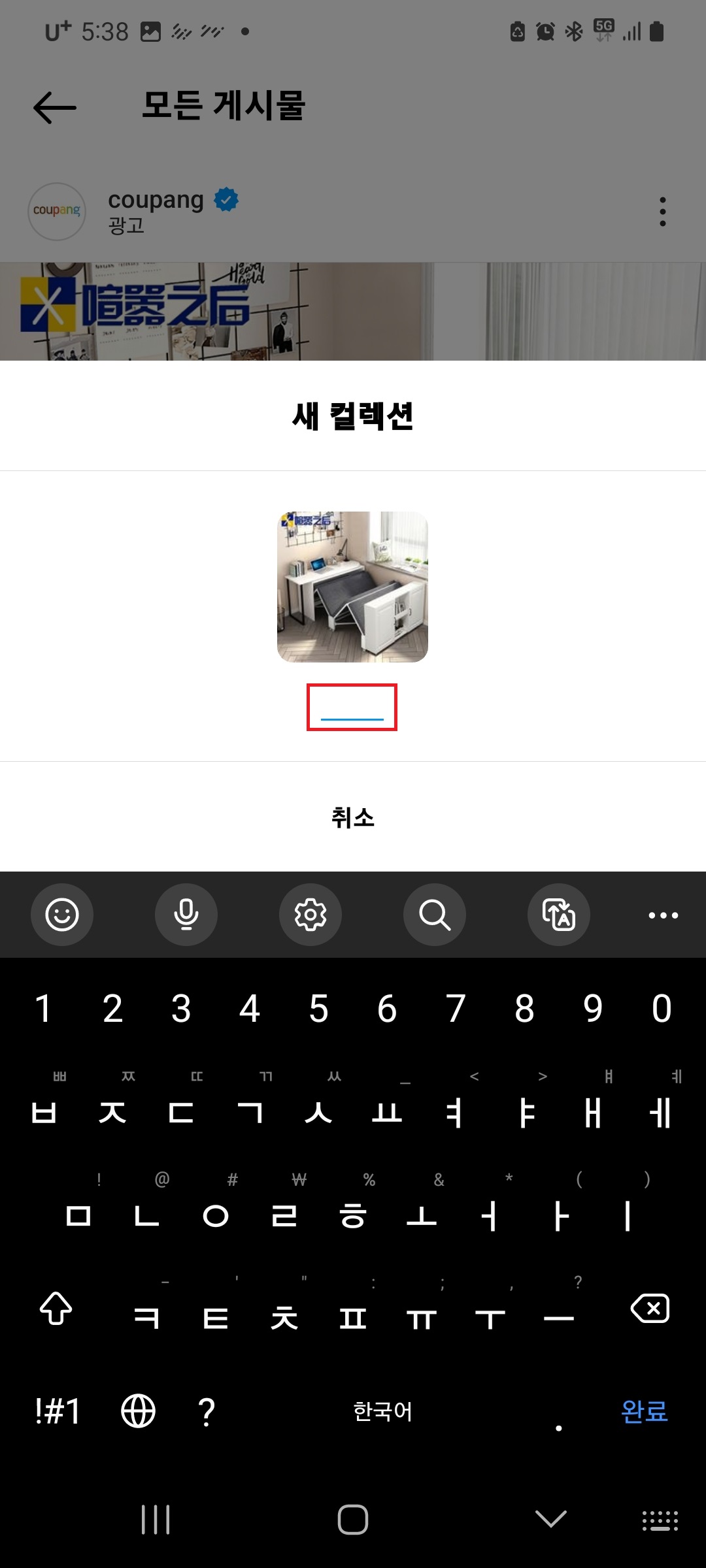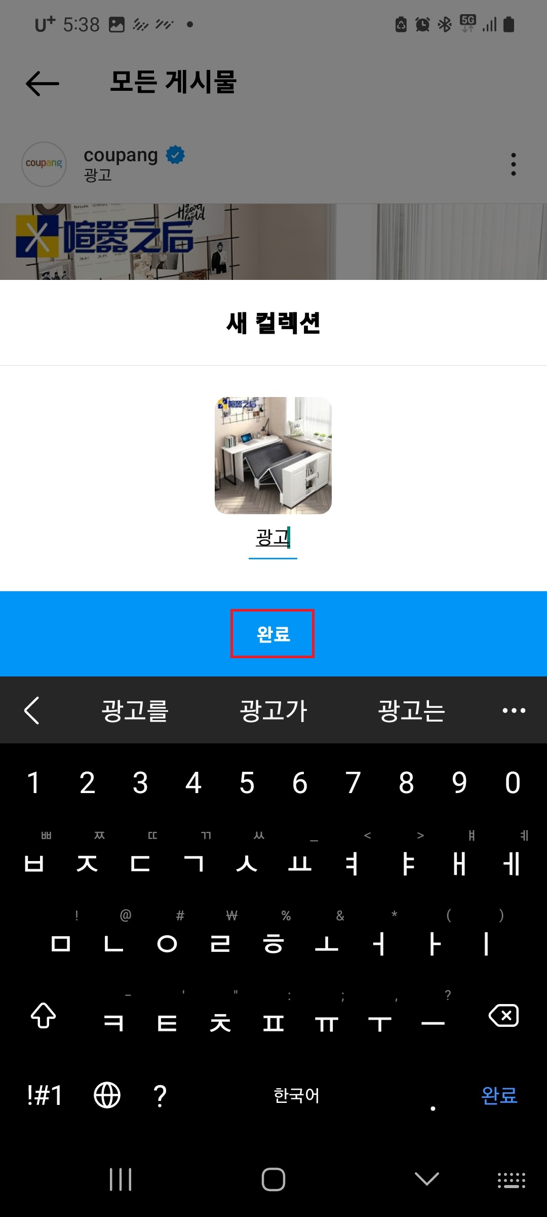 컬렉션 이름을 입력하시고 완료를 누른 뒤 저장됨 탭에 들어가면 새로운 컬렉션이 추가된 것을 보실 수 있어요! 이 기능을 사용하면 저장된 게시물을 테마별로 모아서 볼 수 있답니다!