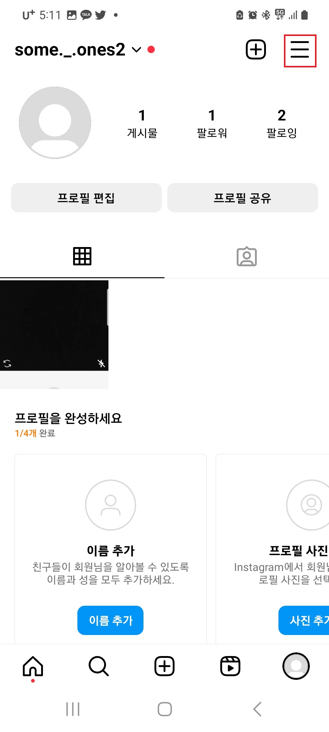 우측 하단 프로필을 클릭해 내 피드로 들어가주신 후 우측 상단 서랍장(선 세개)을 눌러 열어주세요.