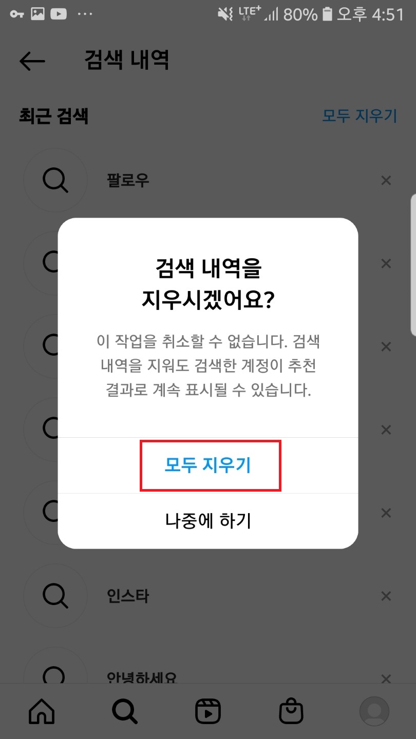 인스타그램 검색기록 삭제 방법 알려드릴게요!