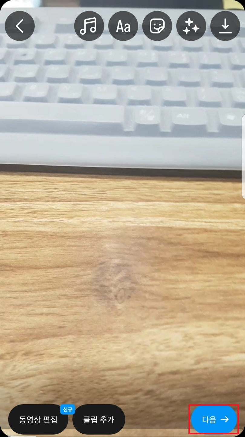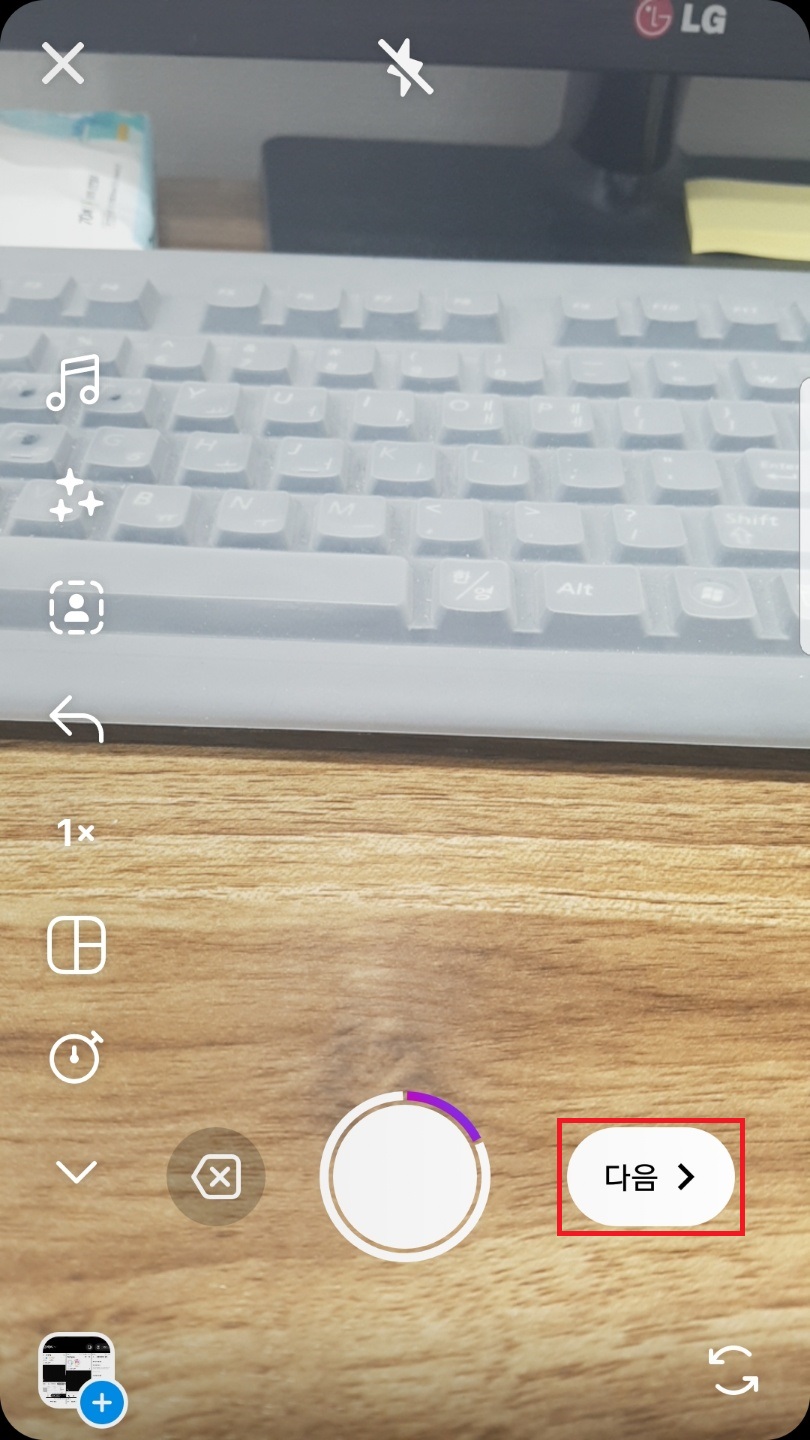 릴스창을 열었다면 위에 카메라 버튼을 누르거나 갤러리에서 영상을 선택해주시고 다음, 다음으로 넘어가주세요.