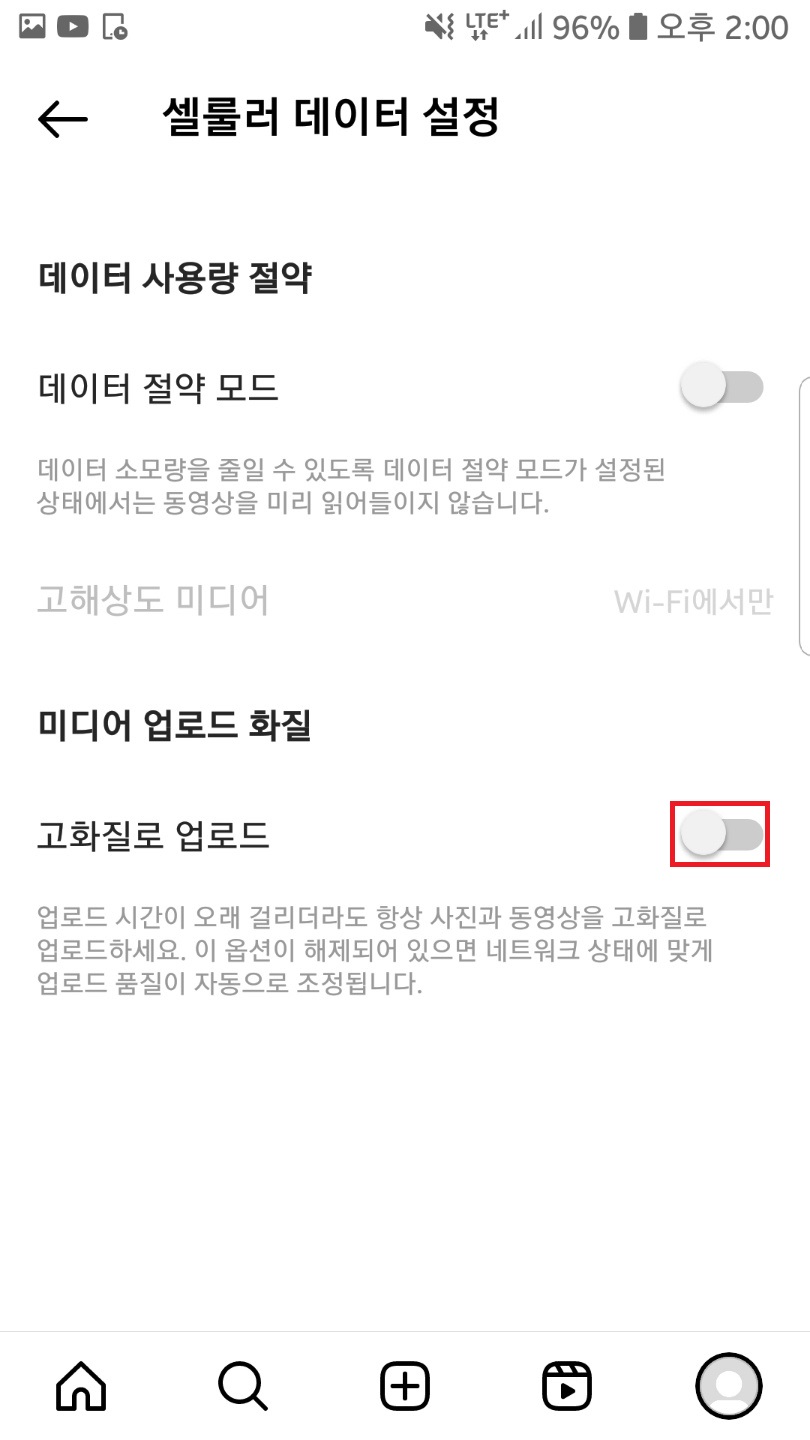 미디어 업로드 화질 밑에 고화질로 업로드를 눌러 켜주세요.