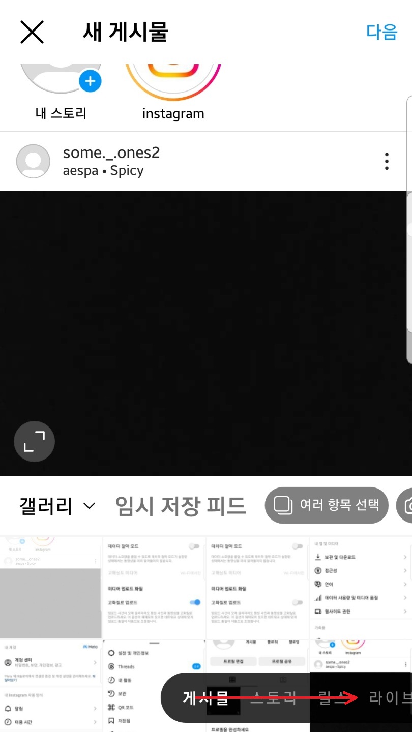릴스▶카메라or갤러리에서 선택▶다음▶다음
