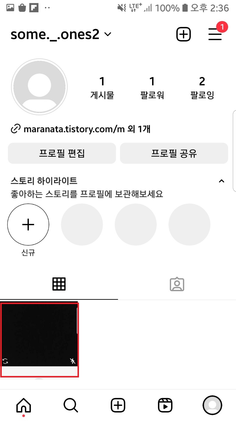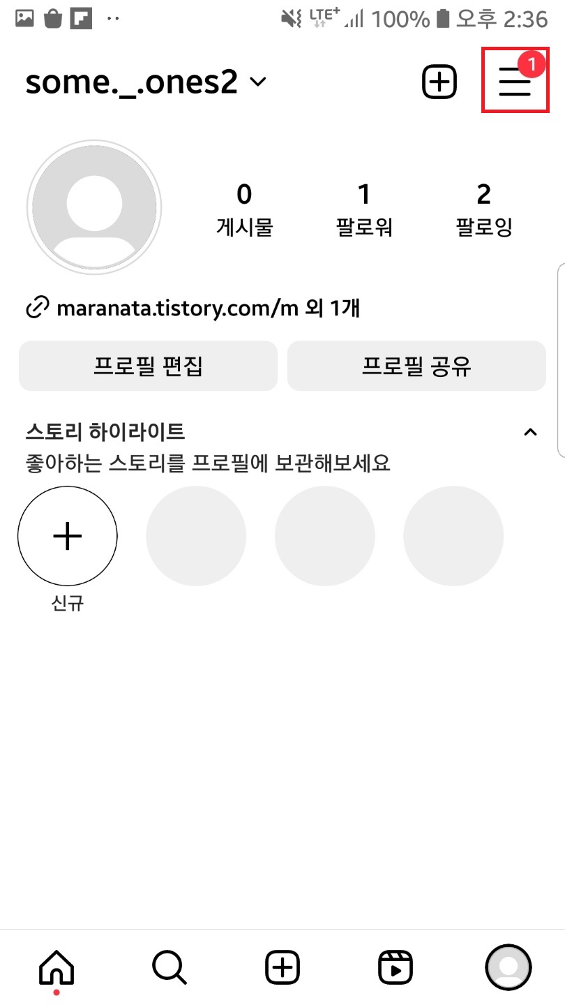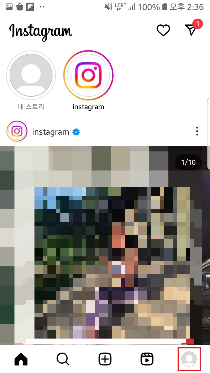 인스타 어플을 실행하신 후 우측 하단 프로필을 클릭해서 내 피드로 들어가주세요!