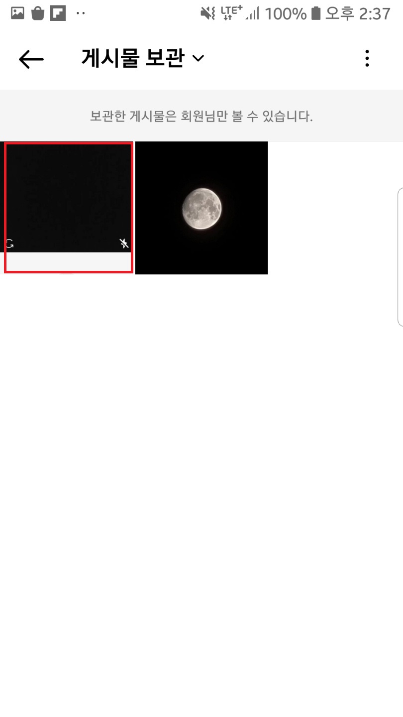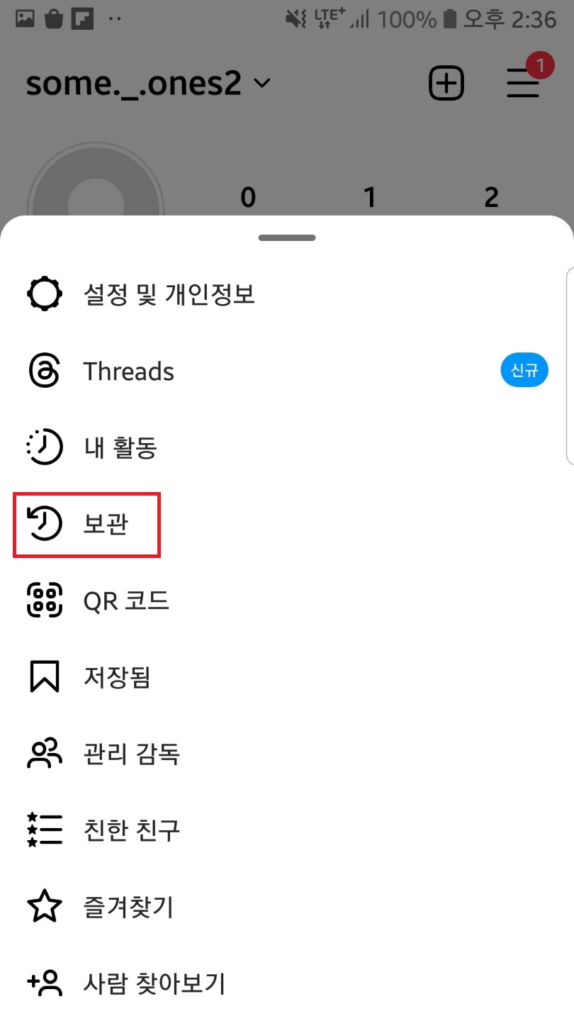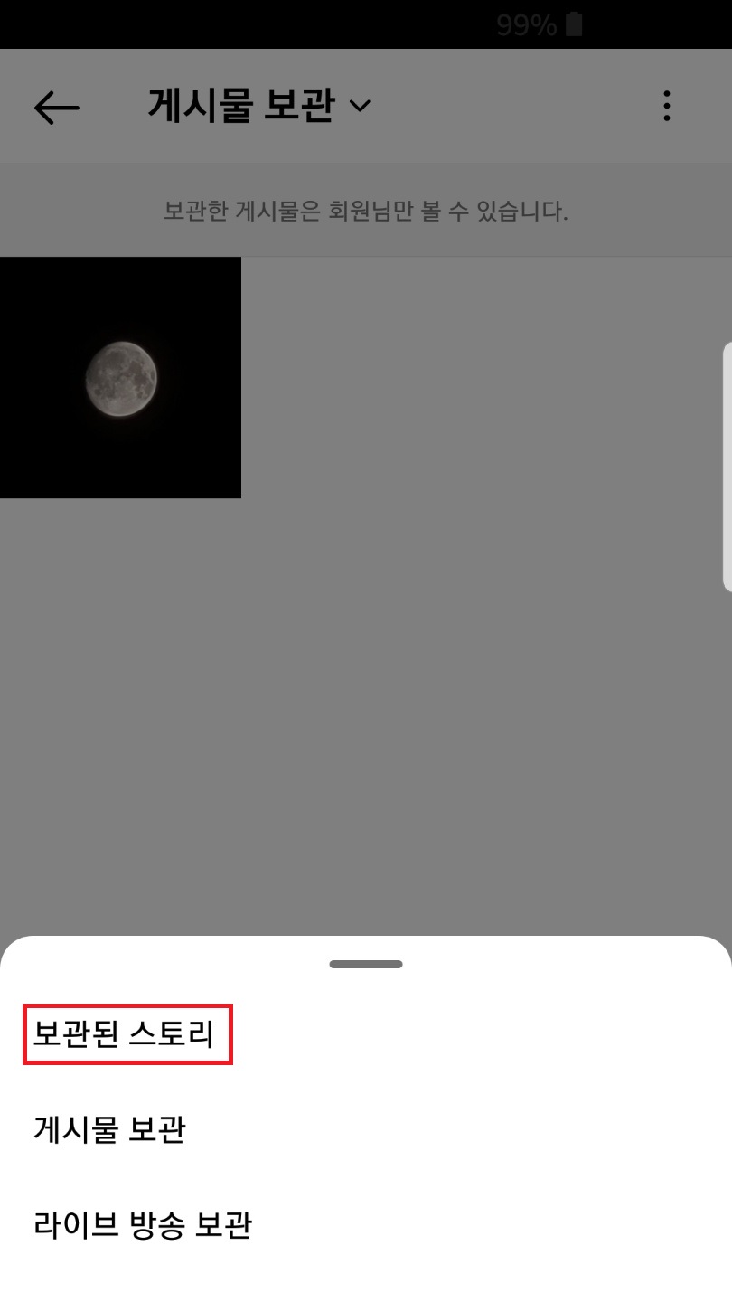 보관된 게시물 선택▶우측 상단 선 세개