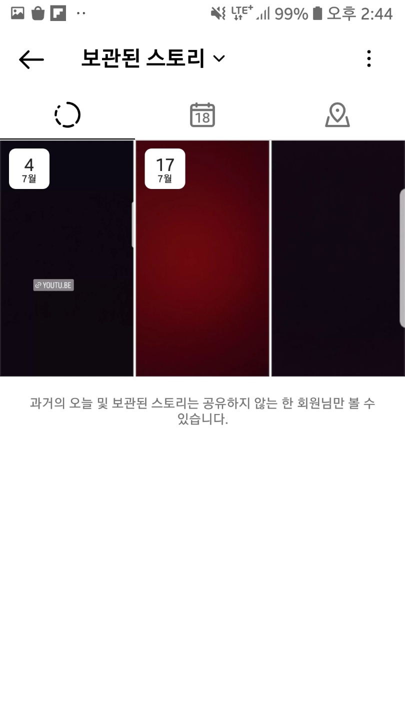 보관된 스토리를 마지막에 봤다면 다시 보관 메뉴에 들어갔을 때 보관된 게시물로 되돌아오는 게 아니라 보관된 스토리 창 그대로 남아있기 때문에 익숙하지 않으면 계속 헷갈릴 수 있을 것 같아요.