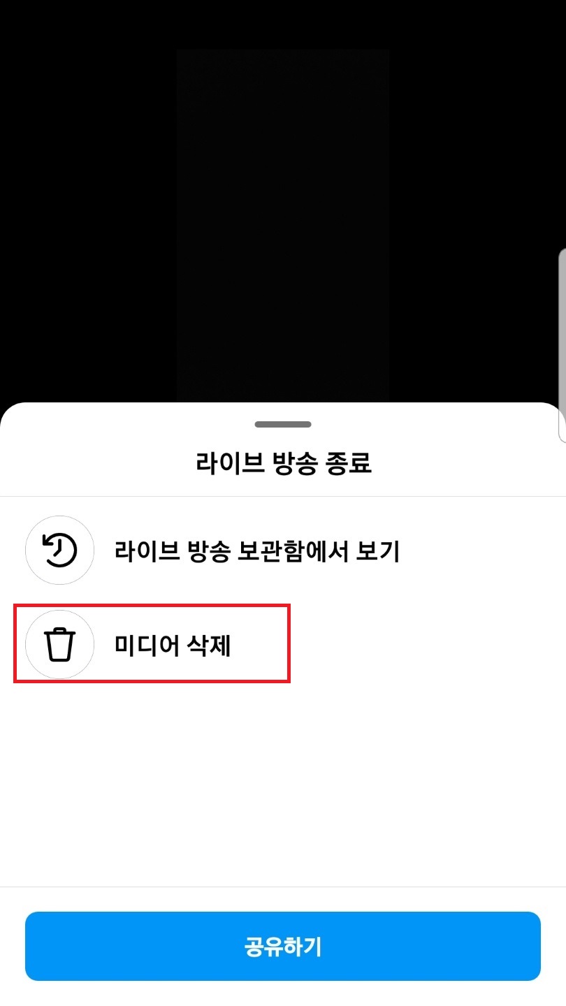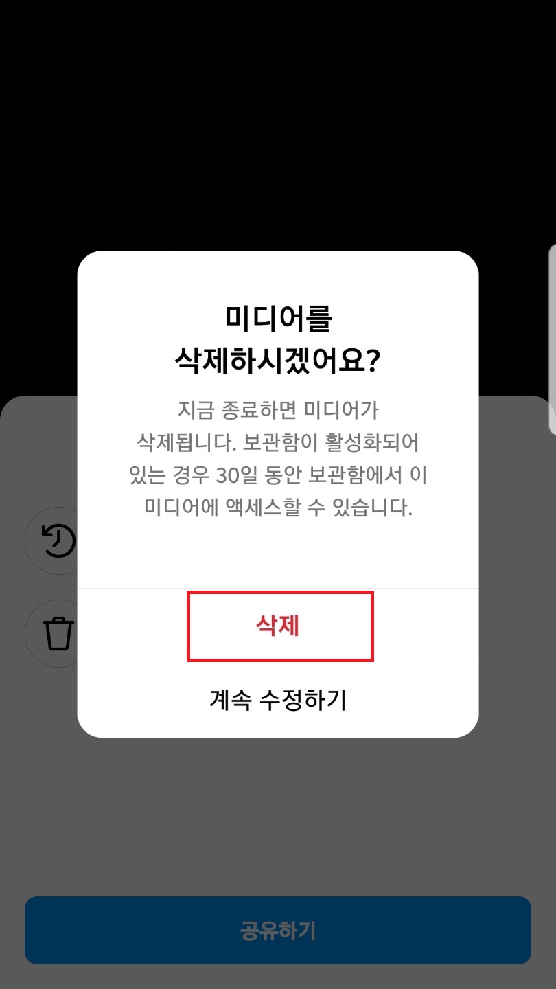 미디어 삭제를 눌러주시고 삭제를 눌러주세요! 이미 보관함 활성화를 해놓았기 때문에 삭제해도 보관함에 저장된답니다.