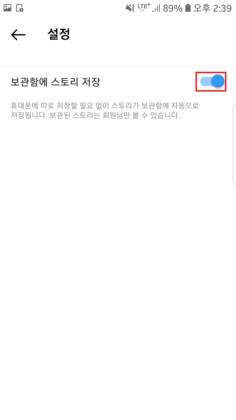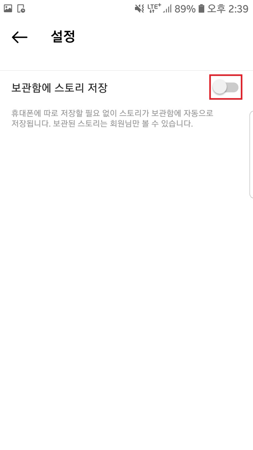 보관함에 스토리 저장이 꺼져있다면 ON으로 바꿔주세요!
