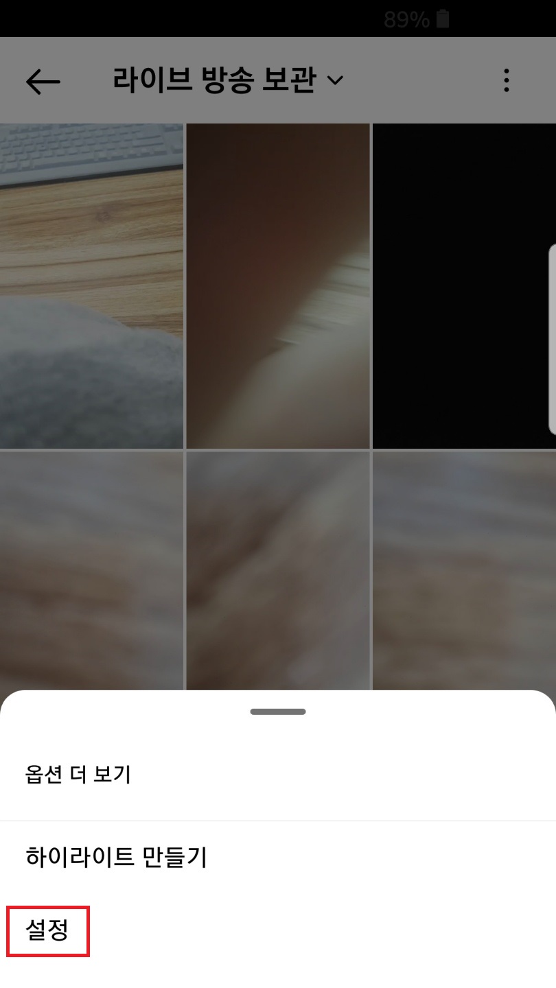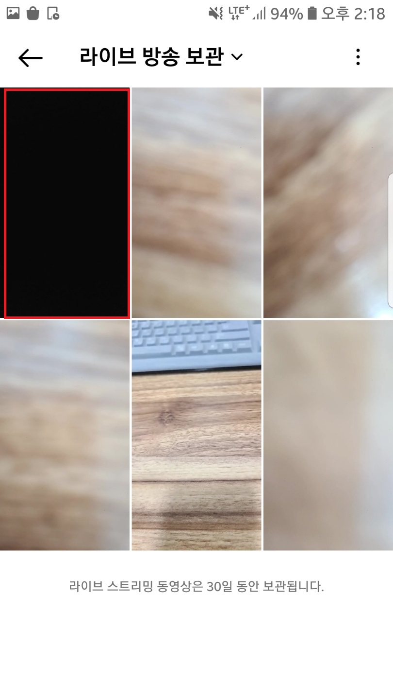 보관을 누른 뒤 보관된 라이브 방송 중 저장할 영상을 클릭해주세요!