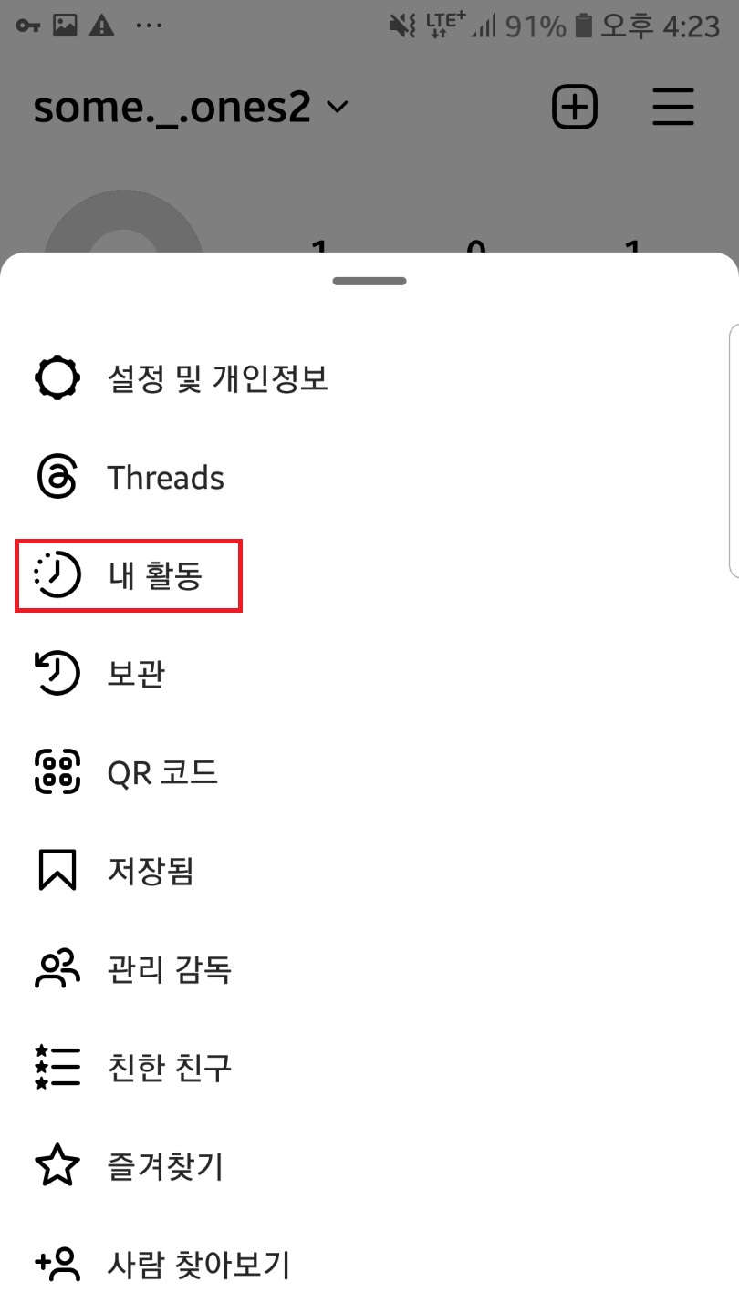 우측 상단 선 세개를 클릭 하시고 내 활동에 들어가셔서 최근에 삭제한 콘텐츠를 눌러주세요.