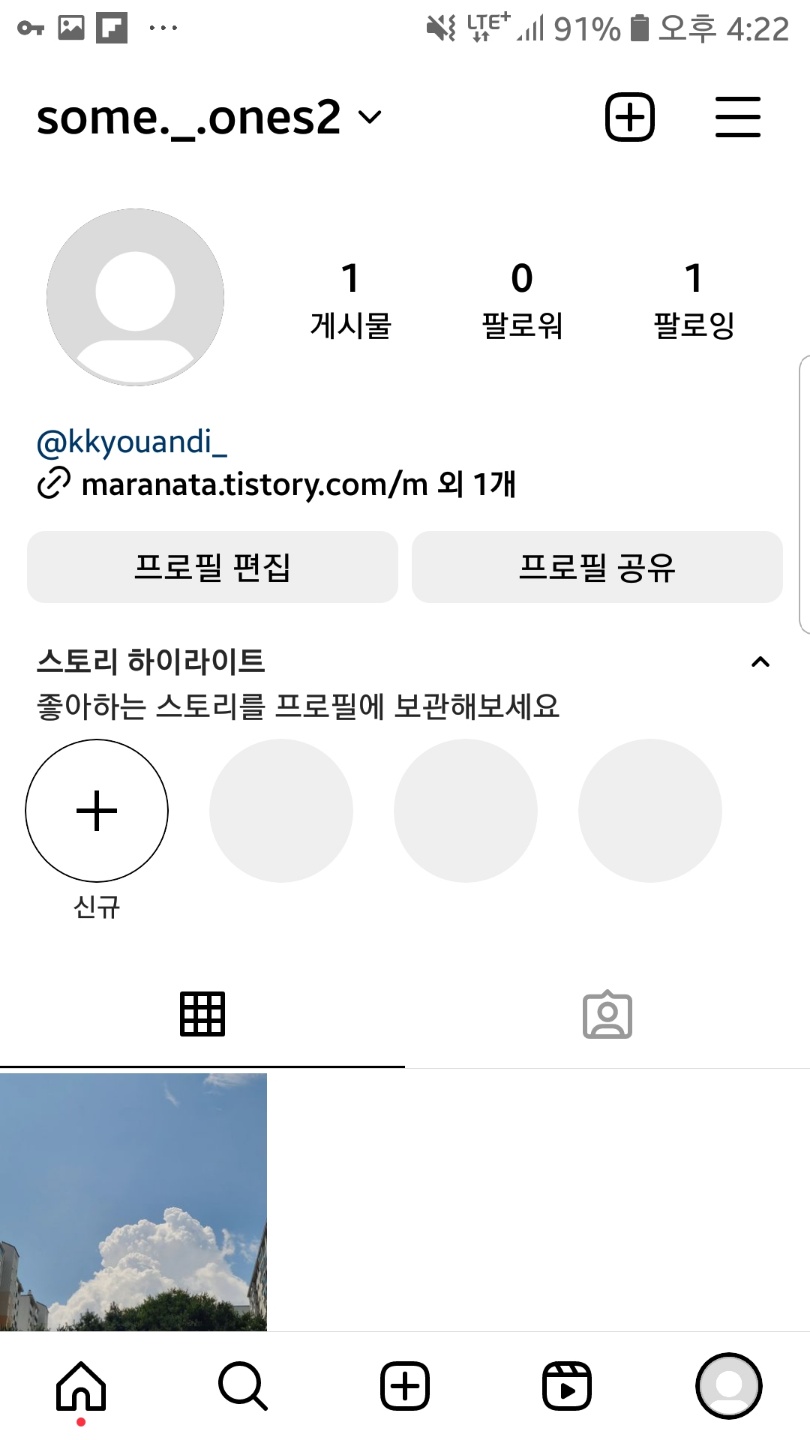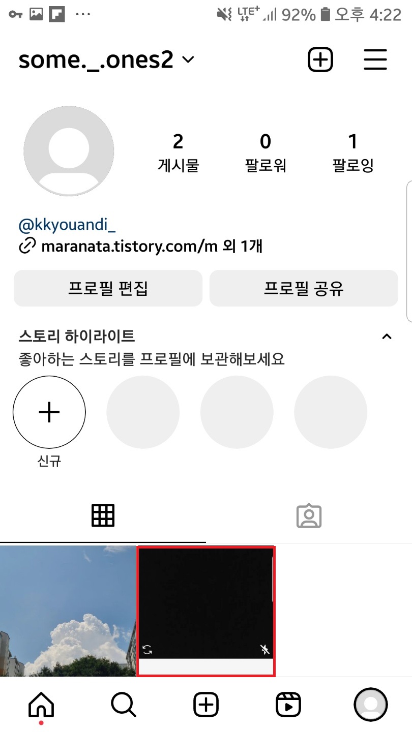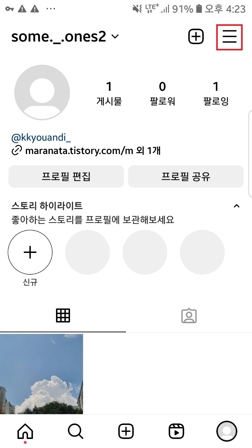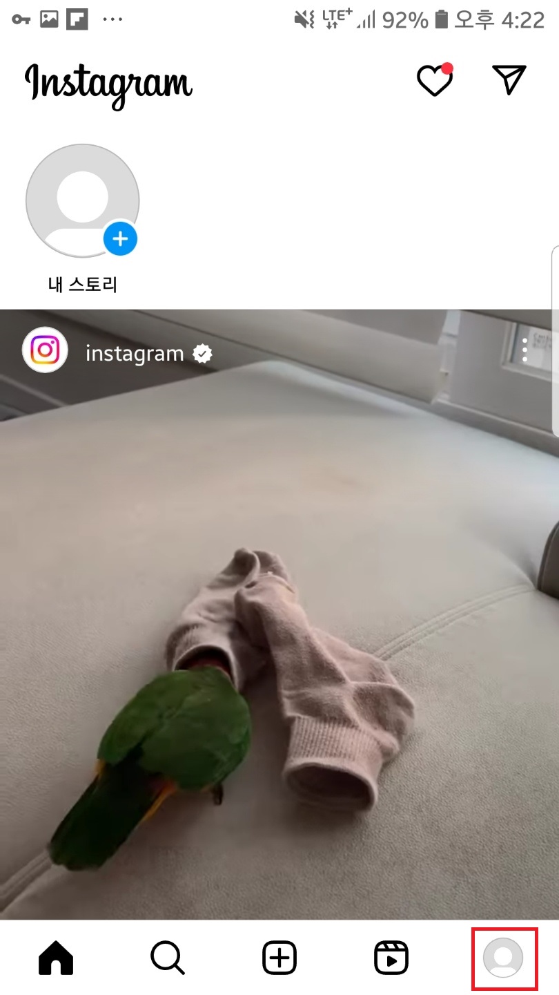 인스타 어플을 실행해주시고 우측 하단 프로필을 클릭해 내 피드에 들어가주세요.